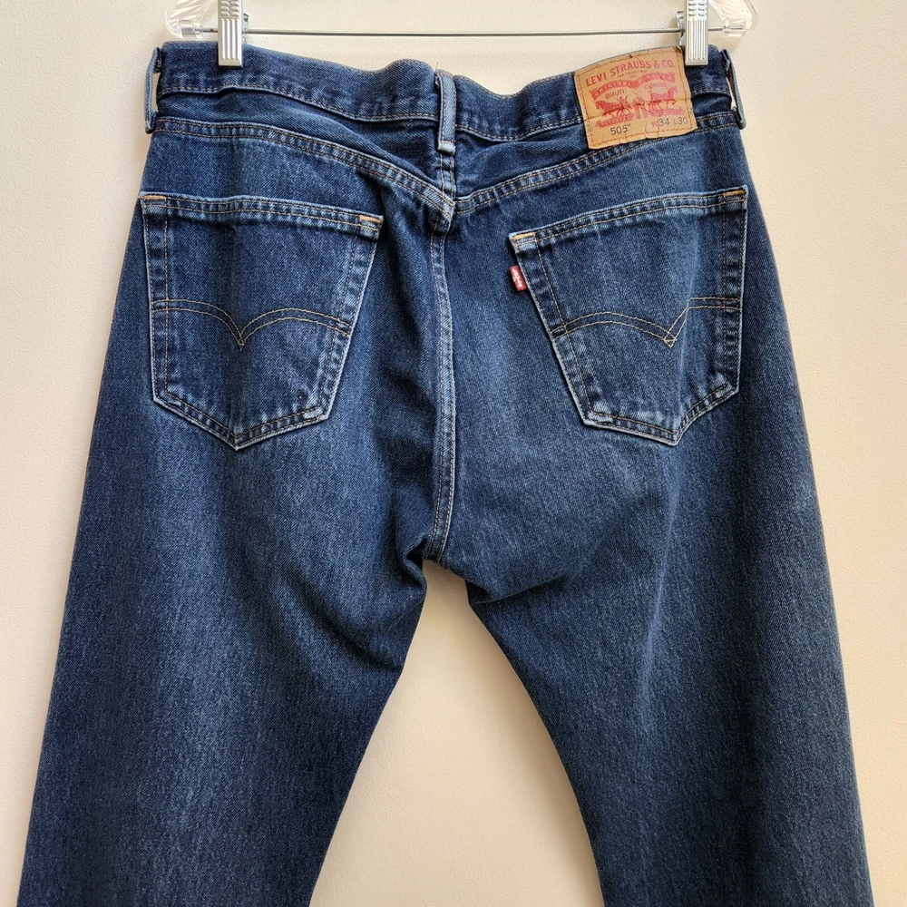 Levi's 505 Mens Jeans Med Wash Straight Leg Sz 34x30 Actual 34.5x29 1/4 Pockets - Pre-Owned in very good condition - Measurement – Approximate Waist across front - 17 1/4 in Rise - 11 1/2 in Inseam - 29 1/4 in Out Seam - 39 1/2 in Leg Opening – 8 in - Blue Medium Washed Straight Leg Denim Jeans. - All Seasons, Night Out, Date Night, Vacation, College, School, Everyday, Day Out, Party, Classic, Modern and Simple - Returns acceptable within 30 days of purchase unworn, in original condition - Check out my E-bay Store. Lots of Choices Available. Reduced shipping for 2 or more items. Let me know before you pay so I can send you an invoice to discount the shipping