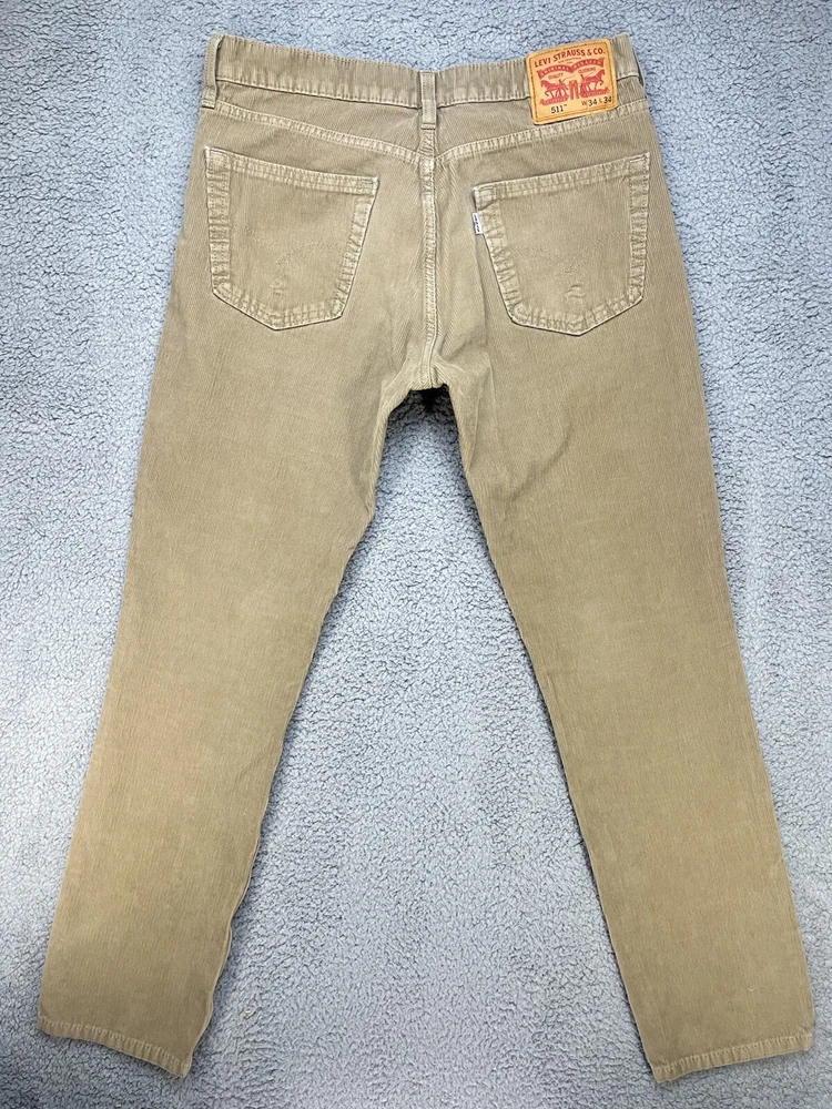 Levi’s 511 Corduroy Pants Men’s 34X34 brown white tag Free returns for domestic buyer. Item must be the same condition as it was delivered for a refund. Actual measurements may vary than what is on the tag. Please measure your favorite garment to insure a proper fit.