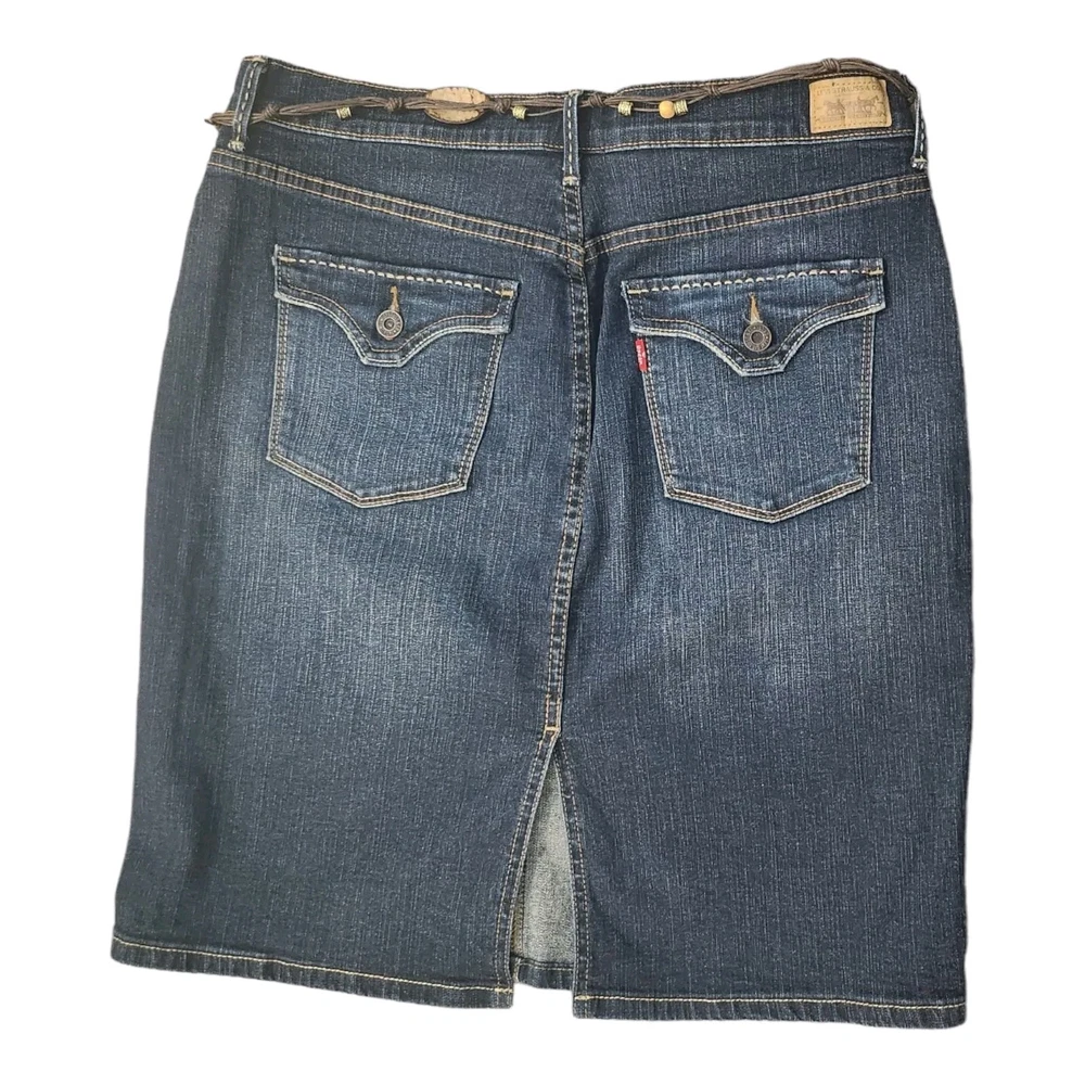 Craft your chic, versatile look with the Levi's 512 Original Jean Perfectly Slimming Dark Wash Denim Skirt. Tailored for a women's size 10, this mini skirt blends timeless style with modern comfort. Its dark wash denim provides a classic blue hue that pairs effortlessly with any top, while the perfectly slimming fit offers a flattering silhouette. The skirt features a convenient zip closure, accented with a signature Levi's logo, buttons, and a zipper for a touch of brand authenticity. Designed with a cotton blend fabric and practical pockets, this piece is as functional as it is fashionable. It's machine washable for easy care, making it a durable addition to your wardrobe for seasons to come.