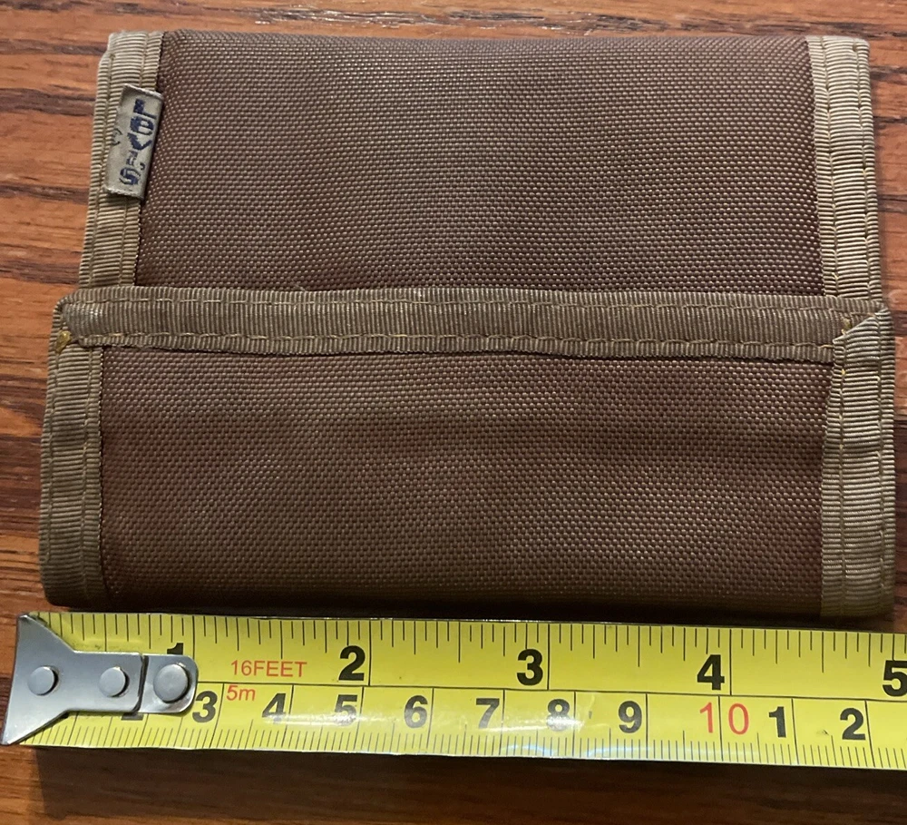 The brown and tan color combination gives it a classic American look that is perfect for any occasion. The wallet is made from high-quality canvas fabric, ensuring durability and longevity. It is a men's wallet and has a trifold style, making it easy to carry in your pocket or purse. The wallet features multiple compartments for cards, coins, and notes, providing ample storage space. The Levi's brand is known for its quality and style, making this wallet a great choice for any fan of the brand. Please refer to the pictures for the best details of the exact item you are receiving. Photos are NOT stock photos.
