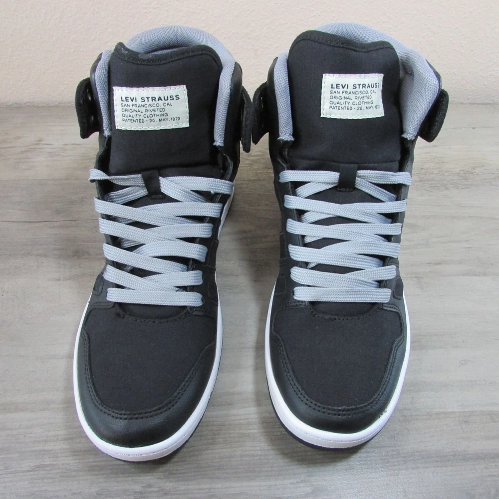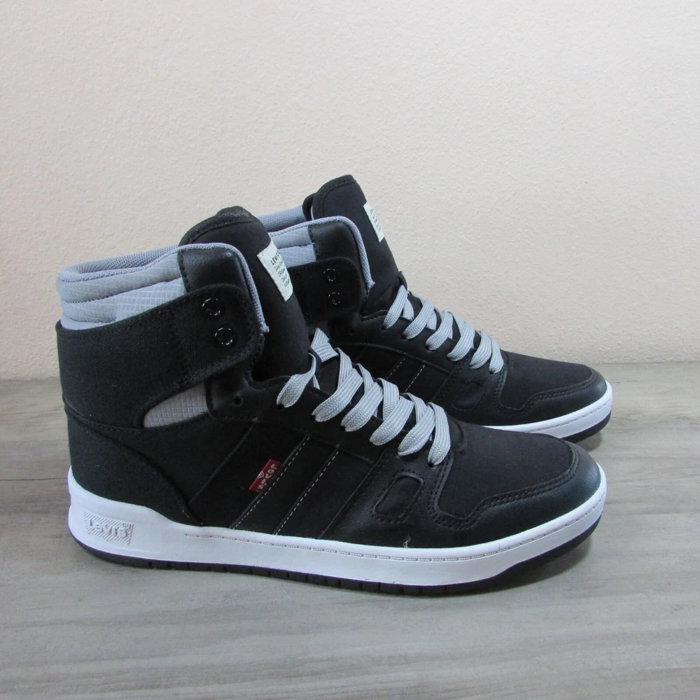 Brand new in box (not pictured) HAS ONLY BEEN TRIED ON Men's Size 8.5 Brand: Levi's Color: Black/Grey BB Hi CZ Sneaker Shoe