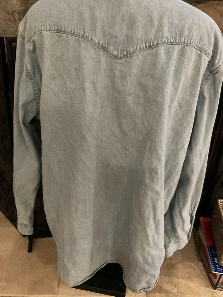 Levi’s Mens Sleeve Pearl Snap The Barstow Western Denim Light Wash Blue. Condition is Pre-owned. Shipped with USPS Ground Advantage.