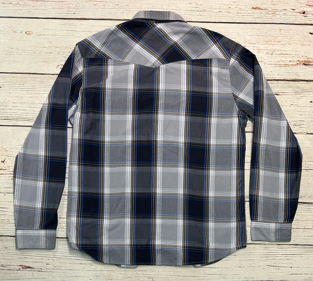 This Levi's shirt is a must-have for any casual occasion. With a plaid pattern and multicolor design, it features long sleeves and a collared neckline with a point collar style. The shirt has a regular fit and is available in size XL. It is made of a knit fabric type and includes flap pockets as accents. The closure is a snap button-up and it is machine washable for easy care. The shirt is suitable for all seasons and is perfect for outdoor activities. The brand is Levi's and the shirt is not personalized or handmade. It is a standard fit and is suitable for men of all ages. Check pictures for condition and measurements for size.
