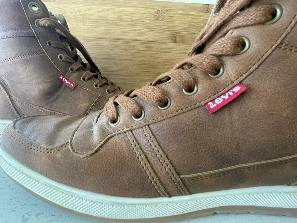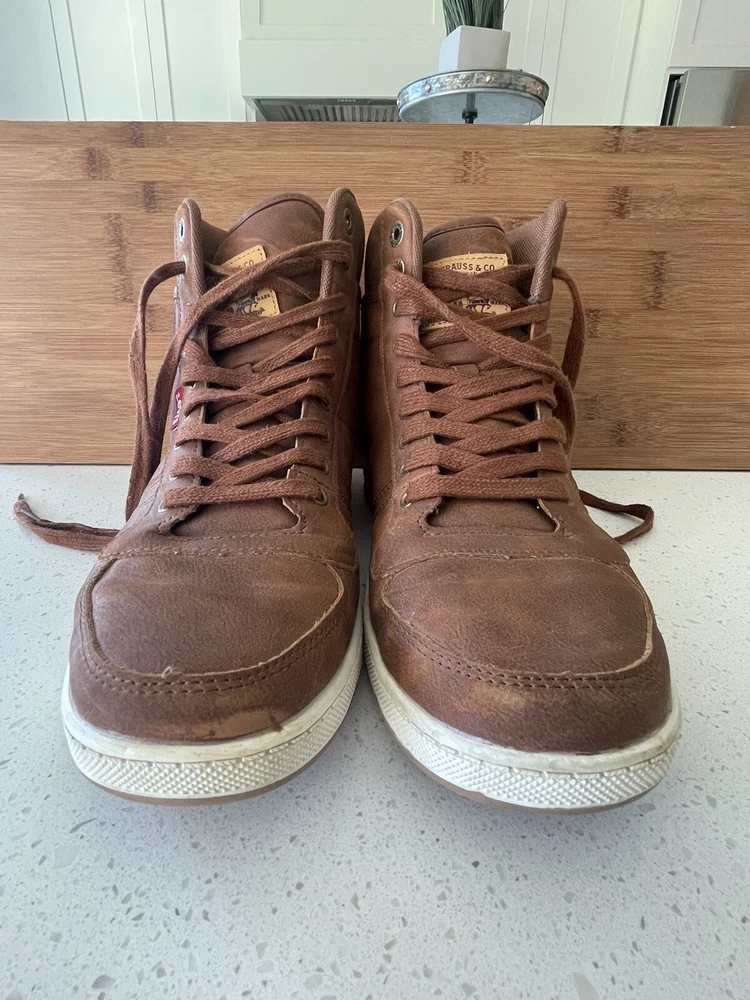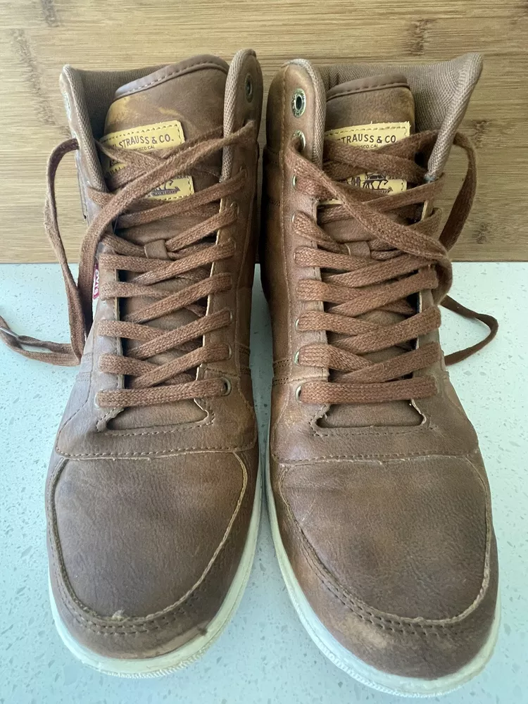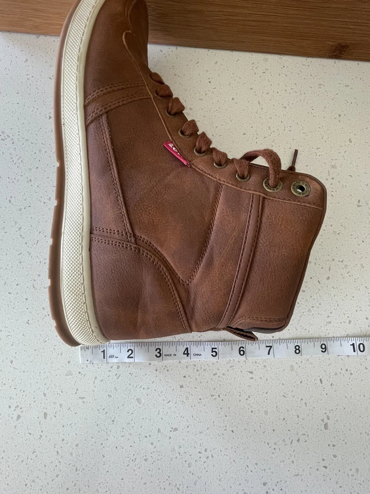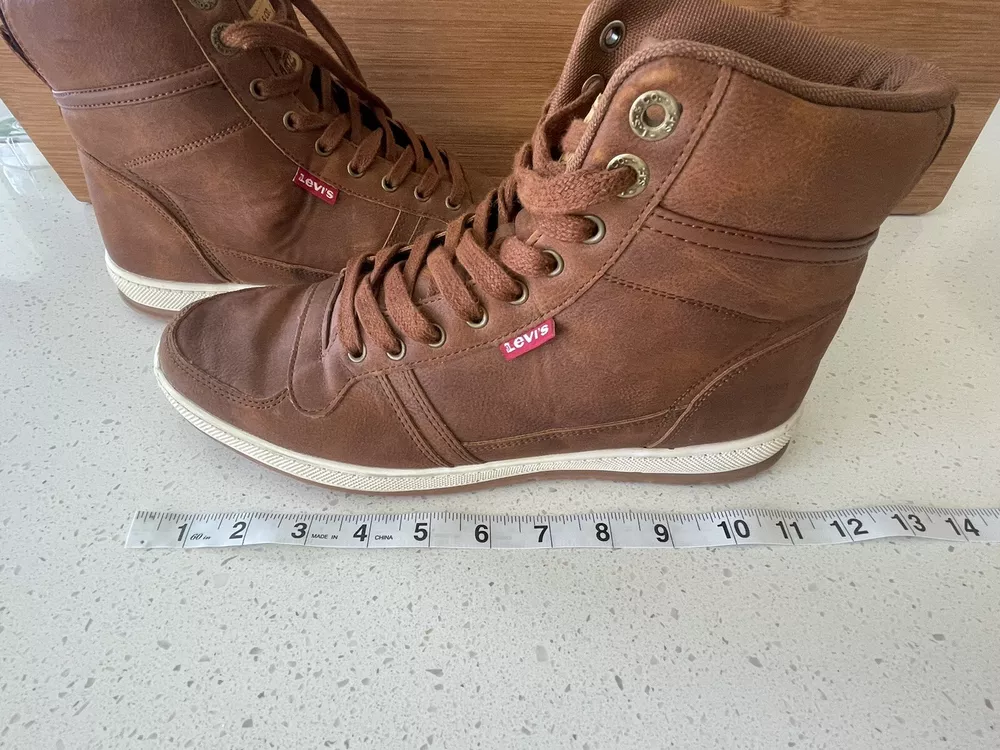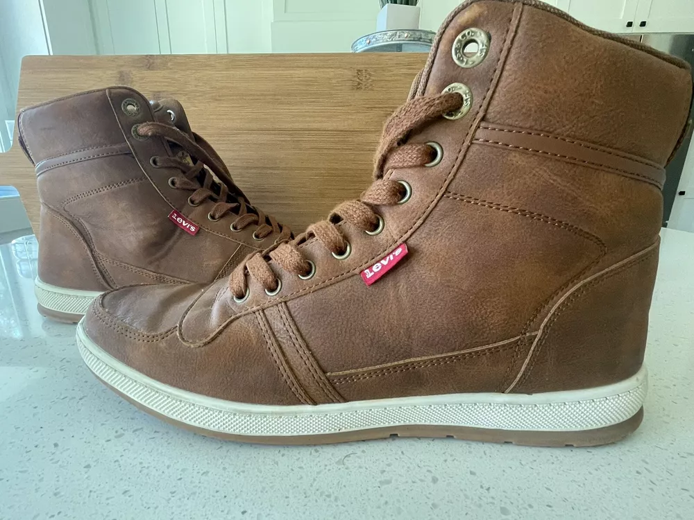 Elevate your outdoor style with these Levi's Mens Trail WX NP Rugged Hiker Chukka Ankle Boots in size 10. These solid brown boots feature a lace-up closure and a standard shoe width, with a cushioned and slip-resistant outsole made of leather for maximum comfort and safety. The upper and insole are also made of high-quality leather, ensuring durability and breathability. Perfect for any adventure, these boots are designed with a sturdy construction and a trendy chukka style. The Trail WX NP Rugged brand is known for their top-quality products, making these boots a reliable choice for any outdoor activity. Add these boots to your collection and experience the ultimate combination of style and comfort. These boots are in excellent condition and from a smoke-free home.