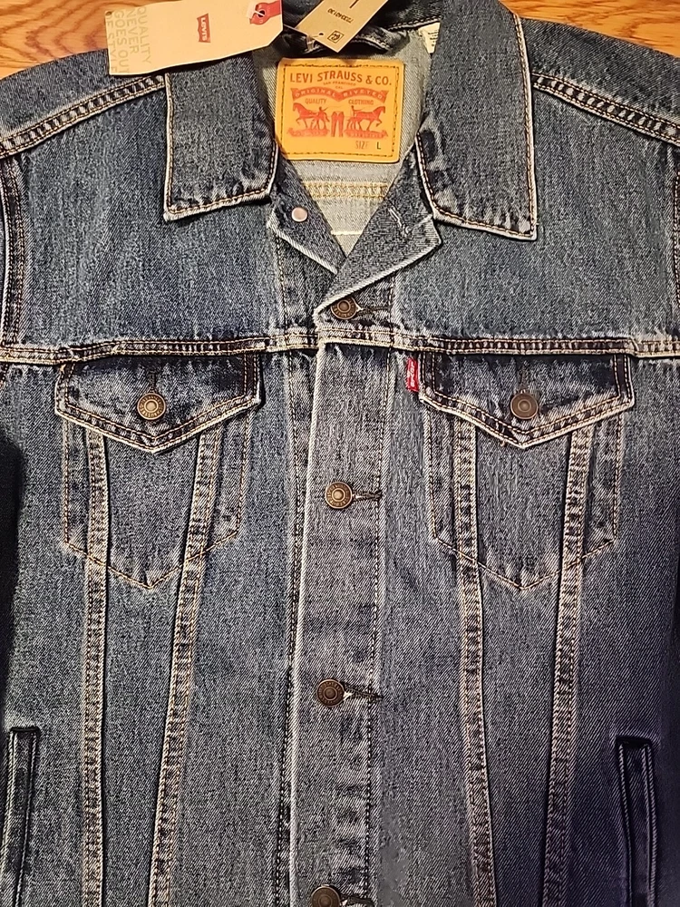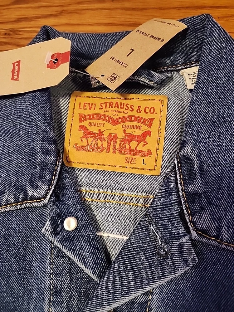 Pattern: Solid Accents: Embroidered Closure: Button Features: Collared, Limited Edition, Pockets, workwear Style: trucker Department: Men Outer Shell Material: Cotton UPC: Does not apply Size: L Jacket/Coat Length: Short gtin13: Does not apply Lining Material: no lining Fabric Type: Denim Vintage: Yes Type: Jacket Color: Blue Theme: Beer Brand: Levi's Size Type: Regular Country/Region of Manufacture: Bangladesh
