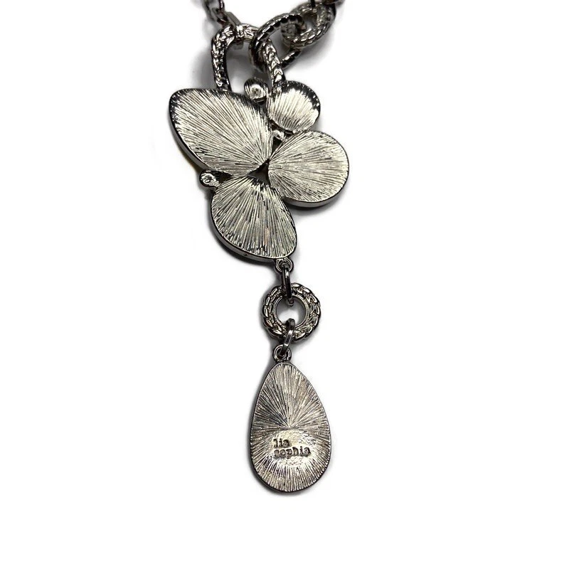 Lia Sophia Azure Y Drop Faceted Bejeweled Cluster Necklace. Great preowned condition. Silver tone with Genuine Mother-of-Pearl, Cut Crystals and Resin Stones in shades of Blue. “Y" Style with non-detachable pendant. Lobster claw closure. Drop measures 11 inches