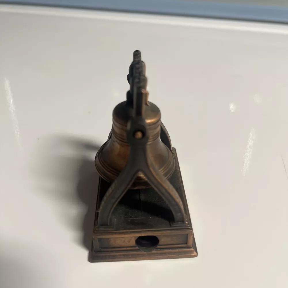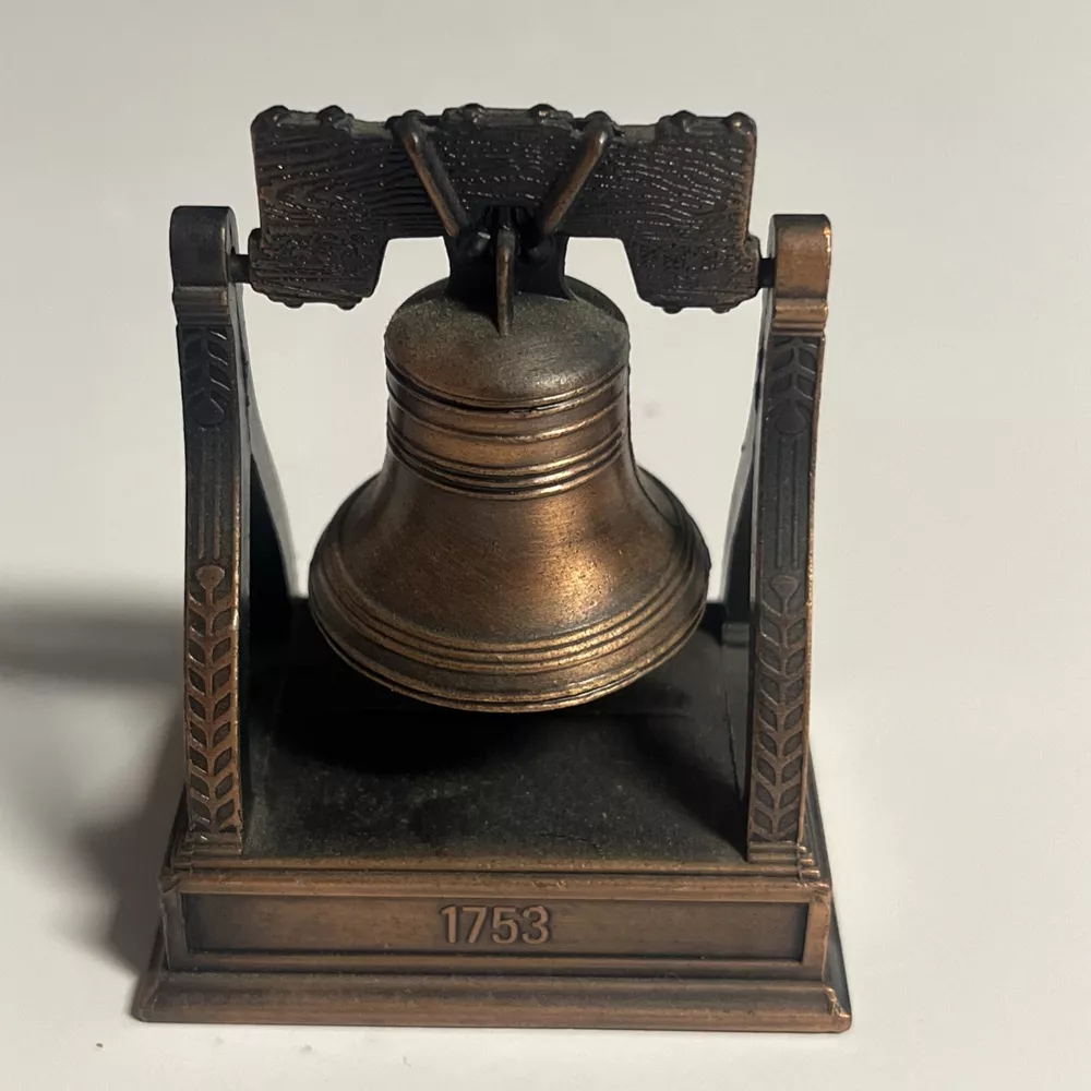 Type:BellFinish:Matte BronzeOriginal/Reproduction:OriginalShape:RoundNumber in Pack:1Item Length:2.75 inBrand:LibertyTime Period Manufactured:1970-1979Country/Region of Manufacture:United StatesItem Width:2.25”Occasion:BicentennialSize:SmallColor:GoldYear Manufactured:1976Material:BronzeTheme:Patriotic