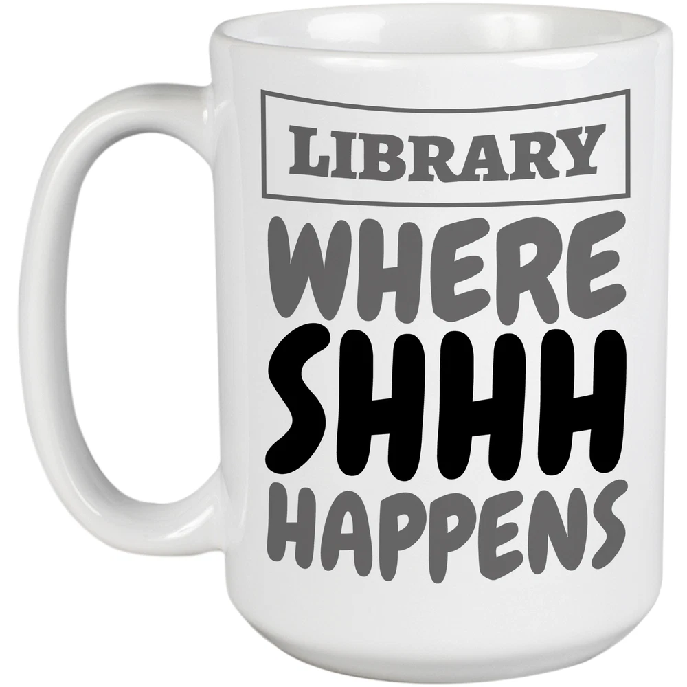 Library, Where SHHH Happens. Silent And Cute Coffee & Tea Gift Mug