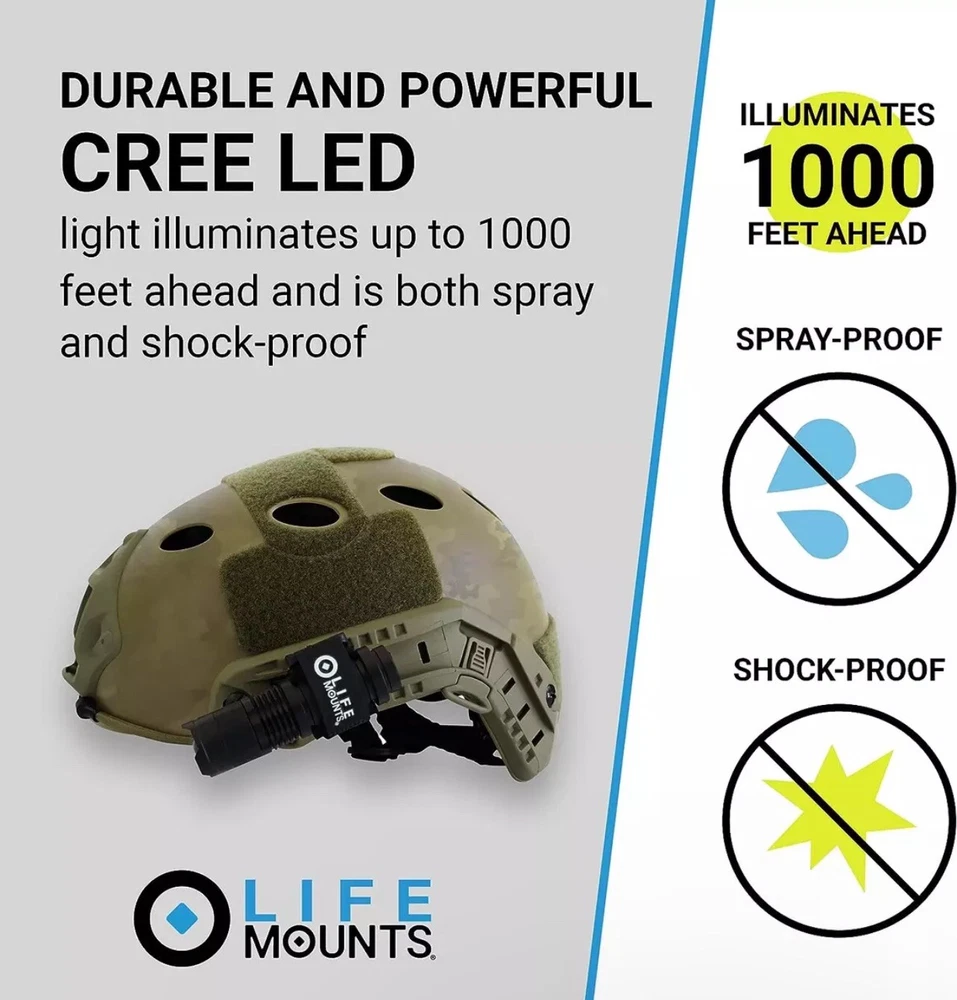 Life Mounts - LED Tactical Helmet ARC Rail Light Stay Safe & Light Your Way NEW Uses one AA battery (not included)
