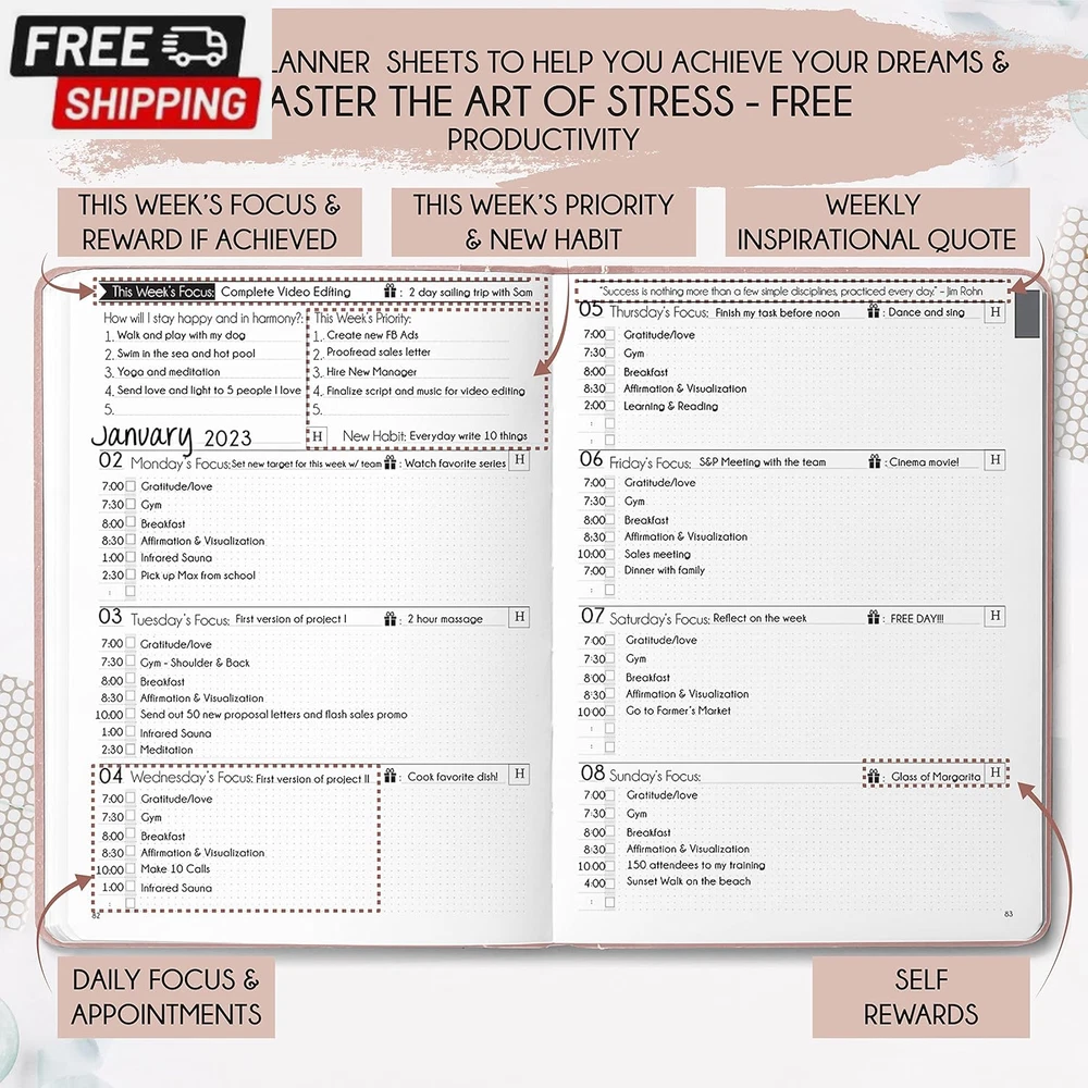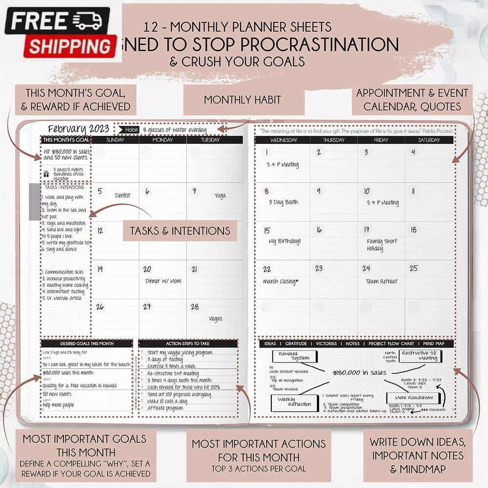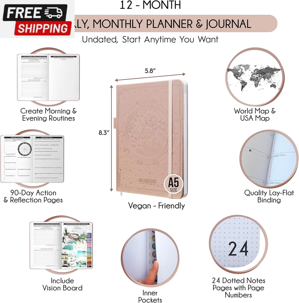 Life and Goal Planner - Undated Daily, Weekly & Monthly Planner for Passion, Organizer, Increase Productivity, Purpose, Success & Happiness, Journal, Agenda, to Do List, Business Planner, Notes, LIFE PLANNER - All the success tools you need to create the life you always wanted - A5 Size (5.8 x 8.3 inch) with 196 pages of life transformation, 52 weekly, 12 monthly planning overviews & reflection, 24 journal pages, habit trackers, mind maps, out foldable vision board, morning & evening routines INCREASE PRODUCTIVITY AND HAPPINESS - This is a deluxe life goal planner showing you how to become the best possible version of yourself on a mental, physical & interpersonal level using the law of attraction vibration guide ACHIEVE YOUR GOALS USING THE LAW OF ATTRACTION - Learn how to set big goals, be happy and manage your time well, and follow the same methods millionaires around the world use to set goals and achieve them REDUCE OVERWHELM, STRESS AND FIX PROCRASTINATION - Follow a unique 8 step system that will help you bring back harmony, clarity, and peace in your life while achieving your goals. This planner is perfect birthday gifts for men and women, anniversary gift for couple and lastly gifts for friends LUXURIOUS & TOP QUALITY- Ideal for both women and men, perfect for entrepreneurs, professionals, college students, and everyone who has a burning desire to turn dreams into reality. No questions asked money-back guarantee Product Description Unlock your full potential with our comprehensive Life Mastery Planners. Our Life Planner is more than just a Goal Planner; it's your partner in achieving success and fulfillment in every aspect of your life. With sections dedicated to Self Care, Habit Tracking, Vision Boarding, and Gratitude Journaling, our planner empowers you to craft a life of purpose and balance. Stay organized and focused with our versatile Undated Weekly and Monthly Planner. Whether you're scheduling appointments, setting priorities with your To-Do List, or reflecting on your progress, our planner provides the flexibility you need to adapt to life's changes while staying committed to your goals. Experience the transformative power of intentional living with our Life Mastery Planners. Start your journey today towards a life of clarity, productivity, and joy. Our Weekly Page is designed to keep you focused, organized, and motivated throughout the week. Start each week by setting clear intentions with our Goal Planner section. Break down your goals into actionable steps and schedule them into your week, ensuring steady progress towards your dreams. Stay accountable to your habits and routines with our Habit Tracker. Monitor your daily habits and celebrate your victories, no matter how small, as they contribute to your overall success. Take time for self-care with our dedicated Self-Care Planner. Schedule moments of relaxation, exercise, and mindfulness to recharge your energy and nurture your body, mind, and soul. Visualize your aspirations and dreams with our Vision Board. Surround yourself with images and words that inspire you, reminding you of the life you're working towards. Practice gratitude daily with our Gratitude Journal. Reflect on the blessings in your life and cultivate an attitude of appreciation, fostering positivity and resilience. The Vision Board serves as your creative space to manifest your dreams and aspirations. Populate it with inspiring images, motivating quotes, and symbols that represent your goals and desires. Let your Vision Board be a visual representation of the life you're working towards, serving as a constant reminder of your purpose and fueling your motivation. As you plan your week ahead, integrate your vision into your daily activities. Align your goals and actions with the vision you've crafted on your Vision Board, allowing it to guide your decisions and priorities. With this intentional approach, you'll infuse every moment with purpose and move closer towards realizing your dreams. Shipping Fast shipping is very important for us. Our standard US shipping service is FREE. Your order will be shipped within 2-3 business days upon full payment received. Your order will be delivered within 2-3 business days after the handling time. We only ship to the confirmed PayPal address. We reserve the right to cancel any order for any reason at any time. We are not responsible for undeliverable addresses. Returns and payment We offer a 30 days return policy from checkout winning date. We allow only PayPal as payment method FeedBack Your feedback very important to us, after you get your package and you are satisfied with our service please leave us positive feedback If you have any problem with your order / any questions please before leave any type of feedback For any questions, using eBay contact system Please visit our eBay store to check out other items for sale! Thank you for shopping at our store.