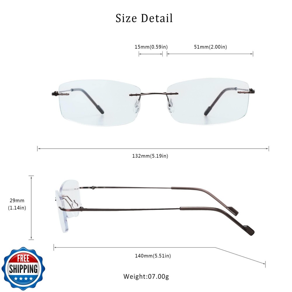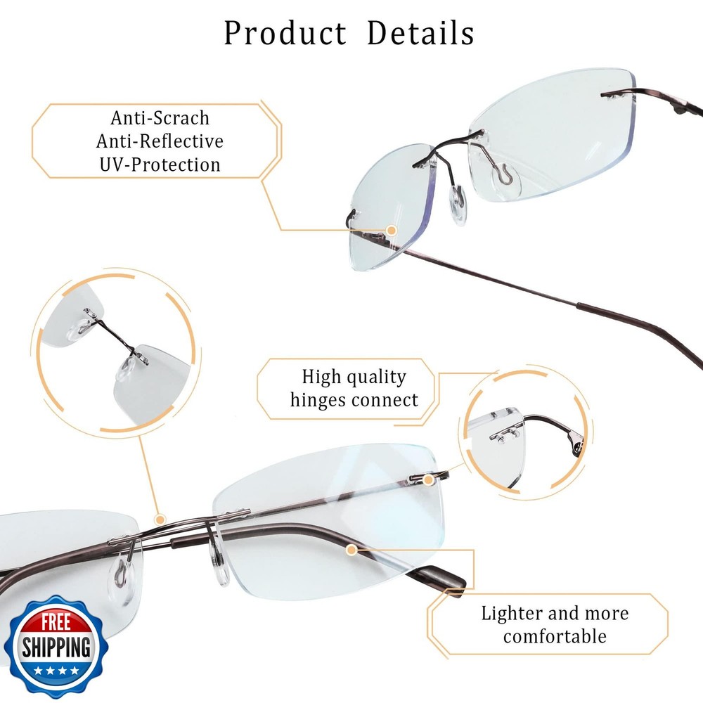 LifeArt Blue Light Blocking Computer Reading Glasses, Men’s and Women’s Rimless Frame, Anti Eyestrain, +4.00 Magnification Features Advanced Blue Light Blocking Lenses: Reflect and filter blue light with a 7-layer anti-reflective coating, reducing glare, preventing color distortion, and improving sleep by minimizing eye-strain during screen time. Superior Clarity & Durability: High light transmittance helps ensure no noticeable yellow tint, maintaining true colors, while the ultra-thin 10μm multi-layer coating enhances scratch resistance and lens longevity. Customizable Magnification Options: Available in strengths from +0.00 to +4.00, these magnified lenses provide sharp focus for close-up tasks like reading, working on laptops, or viewing screens. IMPORTANT: Please select the correct magnification so your order can be properly filled. The one you choose now is +4.00 Magnification Lightweight & Versatile Design: Classic rimless design with an ultra-lightweight build (0.28oz) create a comfortable, universal fit suitable for most face shapes and all-day wear. Refer to images for glasses dimensions. Premium Quality Assurance: Our eyewear is designed to meet the highest standards of durability and performance. We have a 30-day free return policy. Contact us anytime for support or if you experience any issues. Shipping Free & Fast Shipping: We offer free shipping to most of the USA with a normal delivery time of 3-7 days. However, due to the current situation, additional delivery time (up to 3 weeks) may be required for some items. Alternative Carriers: We may use alternative carriers (e.g., USPS, FedEx, UPS) to ensure your package arrives safely and on time. Due to the use of multiple carriers, we are unable to provide a tracking number automatically. Handling Time: Orders are processed and shipped within 1-2 business days of receiving cleared payment. Shipping Restrictions: Shipping to Alaska, Hawaii, Puerto Rico, Guam, and other US territories may incur shipping charges or delivery restrictions. Please contact us before ordering, or your order can be refunded/cancelled. State Restrictions: Certain items may not be shipped to California due to state regulations. Contact for Tracking Updates: If you require tracking updates or have any concerns about the delivery of your order, please feel free to contact us, and we will be happy to assist you. Return Policy 30-Day Hassle-Free Returns: If you are not completely satisfied with your purchase, you can return the item for free within 30 days of receiving it for a full refund or exchange. Easy Return Process: Contact us, and we will provide you with a prepaid return shipping label and detailed instructions. No Restocking Fee: There are no restocking fees for returns. However, the buyer is responsible for return shipping costs if the return is not due to a seller"s error. Refund Processing: Refunds will be processed within 1 business day of receiving the returned item in its original condition. Feedback Your feedback is extremely important to us. We strive to provide the best products and customer service possible. If you are satisfied with your purchase, please take a moment to leave us a positive review. If you have any concerns or issues with your order, please contact us before leaving negative feedback. We are committed to resolving any problems and ensuring your satisfaction. Contact Us If you have any questions or concerns, please feel free to reach out to our customer support team. You can contact us through the eBay messaging system. We are available Monday to Friday, 9:00 am to 5:00 pm EST, and we will do our best to respond to your inquiry within 24 hours. Thank you for supporting our small family business!