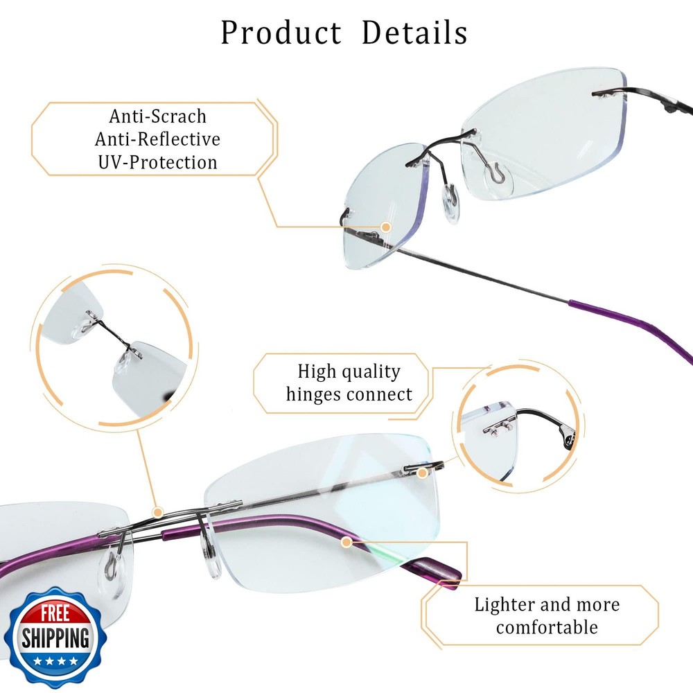 LifeArt Blue Light Blocking Computer Reading Glasses, Men’s and Women’s Rimless Frame, Anti Eyestrain, +1.50 Magnification Features Advanced Blue Light Blocking Lenses: Reflect and filter blue light with a 7-layer anti-reflective coating, reducing glare, preventing color distortion, and improving sleep by minimizing eye-strain during screen time. Superior Clarity & Durability: High light transmittance helps ensure no noticeable yellow tint, maintaining true colors, while the ultra-thin 10μm multi-layer coating enhances scratch resistance and lens longevity. Customizable Magnification Options: Available in strengths from +0.00 to +4.00, these magnified lenses provide sharp focus for close-up tasks like reading, working on laptops, or viewing screens. IMPORTANT: Please select the correct magnification so your order can be properly filled. The one you choose now is +1.50 Magnification Lightweight & Versatile Design: Classic rimless design with an ultra-lightweight build (0.28oz) create a comfortable, universal fit suitable for most face shapes and all-day wear. Refer to images for glasses dimensions. Premium Quality Assurance: Our eyewear is designed to meet the highest standards of durability and performance. We have a 30-day free return policy. Contact us anytime for support or if you experience any issues. Shipping Free & Fast Shipping: We offer free shipping to most of the USA with a normal delivery time of 3-7 days. However, due to the current situation, additional delivery time (up to 3 weeks) may be required for some items. Alternative Carriers: We may use alternative carriers (e.g., USPS, FedEx, UPS) to ensure your package arrives safely and on time. Due to the use of multiple carriers, we are unable to provide a tracking number automatically. Handling Time: Orders are processed and shipped within 1-2 business days of receiving cleared payment. Shipping Restrictions: Shipping to Alaska, Hawaii, Puerto Rico, Guam, and other US territories may incur shipping charges or delivery restrictions. Please contact us before ordering, or your order can be refunded/cancelled. State Restrictions: Certain items may not be shipped to California due to state regulations. Contact for Tracking Updates: If you require tracking updates or have any concerns about the delivery of your order, please feel free to contact us, and we will be happy to assist you. Return Policy 30-Day Hassle-Free Returns: If you are not completely satisfied with your purchase, you can return the item for free within 30 days of receiving it for a full refund or exchange. Easy Return Process: Contact us, and we will provide you with a prepaid return shipping label and detailed instructions. No Restocking Fee: There are no restocking fees for returns. However, the buyer is responsible for return shipping costs if the return is not due to a seller"s error. Refund Processing: Refunds will be processed within 1 business day of receiving the returned item in its original condition. Feedback Your feedback is extremely important to us. We strive to provide the best products and customer service possible. If you are satisfied with your purchase, please take a moment to leave us a positive review. If you have any concerns or issues with your order, please contact us before leaving negative feedback. We are committed to resolving any problems and ensuring your satisfaction. Contact Us If you have any questions or concerns, please feel free to reach out to our customer support team. You can contact us through the eBay messaging system. We are available Monday to Friday, 9:00 am to 5:00 pm EST, and we will do our best to respond to your inquiry within 24 hours. Thank you for supporting our small family business!
