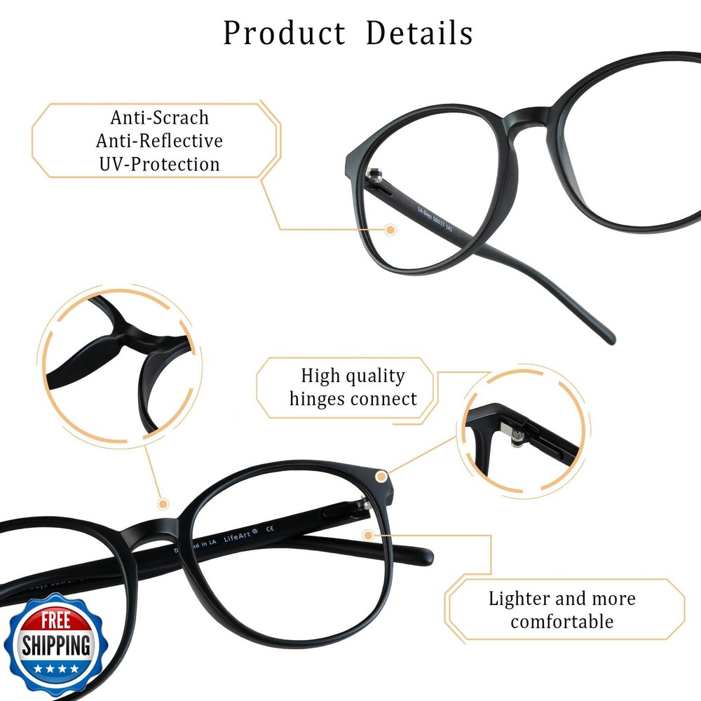 LifeArt Blue Light Blocking Glasses, Anti Eyestrain, Computer Reading Glasses, Gaming Glasses, TV Glasses for Women Men, Anti Glare (Black, 5.75 Magnification) Features Reflect and filter blue light, prevent color distortion, 7-layer anti-reflective coating to reflect and filter blue light, reduce eyestrain and sleep better. High light transmittance with no noticeable yellow tint to prevent color distortion, minimize glare from digital screens. Thinner and durable, the multi-layer coating is combined into a single layer with a thickness of only 10um, increases the surface hardness of the lens, prevent scratches and abrasion. Magnification glasses option, with +0.25 to + 6.0 magnified lenses, helps you more clearly see objects that are 12-14 inches away (screens, books, laptops, etc.) if they were otherwise out of focus or cause further eye strain. Classic round frame design, ultra-lightweight, universal size fits most face shapes. Rest assured to buy, we stick to pay attention to product quality, any problem for this product, just contact the seller without any hesitation and we will provide you the best service! Shipping Free & Fast Shipping: We offer free shipping to most of the USA with a normal delivery time of 3-7 days. However, due to the current situation, additional delivery time (up to 3 weeks) may be required for some items. Alternative Carriers: We may use alternative carriers (e.g., USPS, FedEx, UPS) to ensure your package arrives safely and on time. Due to the use of multiple carriers, we are unable to provide a tracking number automatically. Handling Time: Orders are processed and shipped within 1-2 business days of receiving cleared payment. Shipping Restrictions: Shipping to Alaska, Hawaii, Puerto Rico, Guam, and other US territories may incur shipping charges or delivery restrictions. Please contact us before ordering, or your order can be refunded/cancelled. State Restrictions: Certain items may not be shipped to California due to state regulations. Contact for Tracking Updates: If you require tracking updates or have any concerns about the delivery of your order, please feel free to contact us, and we will be happy to assist you. Return Policy 30-Day Hassle-Free Returns: If you are not completely satisfied with your purchase, you can return the item for free within 30 days of receiving it for a full refund or exchange. Easy Return Process: Contact us, and we will provide you with a prepaid return shipping label and detailed instructions. No Restocking Fee: There are no restocking fees for returns. However, the buyer is responsible for return shipping costs if the return is not due to a seller"s error. Refund Processing: Refunds will be processed within 1 business day of receiving the returned item in its original condition. Feedback Your feedback is extremely important to us. We strive to provide the best products and customer service possible. If you are satisfied with your purchase, please take a moment to leave us a positive review. If you have any concerns or issues with your order, please contact us before leaving negative feedback. We are committed to resolving any problems and ensuring your satisfaction. Contact Us If you have any questions or concerns, please feel free to reach out to our customer support team. You can contact us through the eBay messaging system. We are available Monday to Friday, 9:00 am to 5:00 pm EST, and we will do our best to respond to your inquiry within 24 hours. Thank you for supporting our small family business!