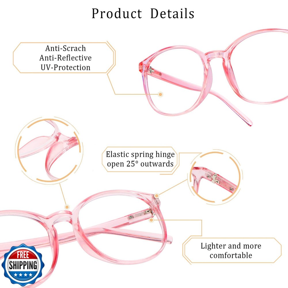 LifeArt Blue Light Blocking Glasses, Anti Eyestrain, Computer Reading Glasses with Spring Hinge, Gaming Glasses, TV Glasses for Women, Anti Glare (Clear Pink, 3.75 Magnification) Features Reflect and filter blue light, prevent color distortion, 7-layer anti-reflective coating to reflect and filter blue light, reduce eyestrain and sleep better. High light transmittance with no noticeable yellow tint to prevent color distortion, minimize glare from digital screens. Thinner and durable, the multi-layer coating is combined into a single layer with a thickness of only 10um, increases the surface hardness of the lens, prevent scratches and abrasion. Magnification glasses option, with +0.25 to + 6.0 magnified lenses, helps you more clearly see objects that are 12-14 inches away (screens, books, laptops, etc.) if they were otherwise out of focus or cause further eye strain. Classic round frame design, ultra-lightweight, universal size fits most face shapes. Rest assured to buy, we stick to pay attention to product quality, any problem for this product, just contact the seller without any hesitation and we will provide you the best service! Shipping Free & Fast Shipping: We offer free shipping to most of the USA with a normal delivery time of 3-7 days. However, due to the current situation, additional delivery time (up to 3 weeks) may be required for some items. Alternative Carriers: We may use alternative carriers (e.g., USPS, FedEx, UPS) to ensure your package arrives safely and on time. Due to the use of multiple carriers, we are unable to provide a tracking number automatically. Handling Time: Orders are processed and shipped within 1-2 business days of receiving cleared payment. Shipping Restrictions: Shipping to Alaska, Hawaii, Puerto Rico, Guam, and other US territories may incur shipping charges or delivery restrictions. Please contact us before ordering, or your order can be refunded/cancelled. State Restrictions: Certain items may not be shipped to California due to state regulations. Contact for Tracking Updates: If you require tracking updates or have any concerns about the delivery of your order, please feel free to contact us, and we will be happy to assist you. Return Policy 30-Day Hassle-Free Returns: If you are not completely satisfied with your purchase, you can return the item for free within 30 days of receiving it for a full refund or exchange. Easy Return Process: Contact us, and we will provide you with a prepaid return shipping label and detailed instructions. No Restocking Fee: There are no restocking fees for returns. However, the buyer is responsible for return shipping costs if the return is not due to a seller"s error. Refund Processing: Refunds will be processed within 1 business day of receiving the returned item in its original condition. Feedback Your feedback is extremely important to us. We strive to provide the best products and customer service possible. If you are satisfied with your purchase, please take a moment to leave us a positive review. If you have any concerns or issues with your order, please contact us before leaving negative feedback. We are committed to resolving any problems and ensuring your satisfaction. Contact Us If you have any questions or concerns, please feel free to reach out to our customer support team. You can contact us through the eBay messaging system. We are available Monday to Friday, 9:00 am to 5:00 pm EST, and we will do our best to respond to your inquiry within 24 hours. Thank you for supporting our small family business!