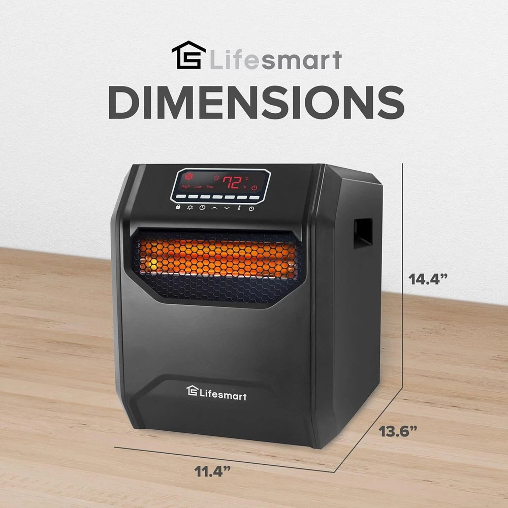 LifeSmart Infrared Space Heater, 1500 Watt w/ Remote and Digital Display, Black