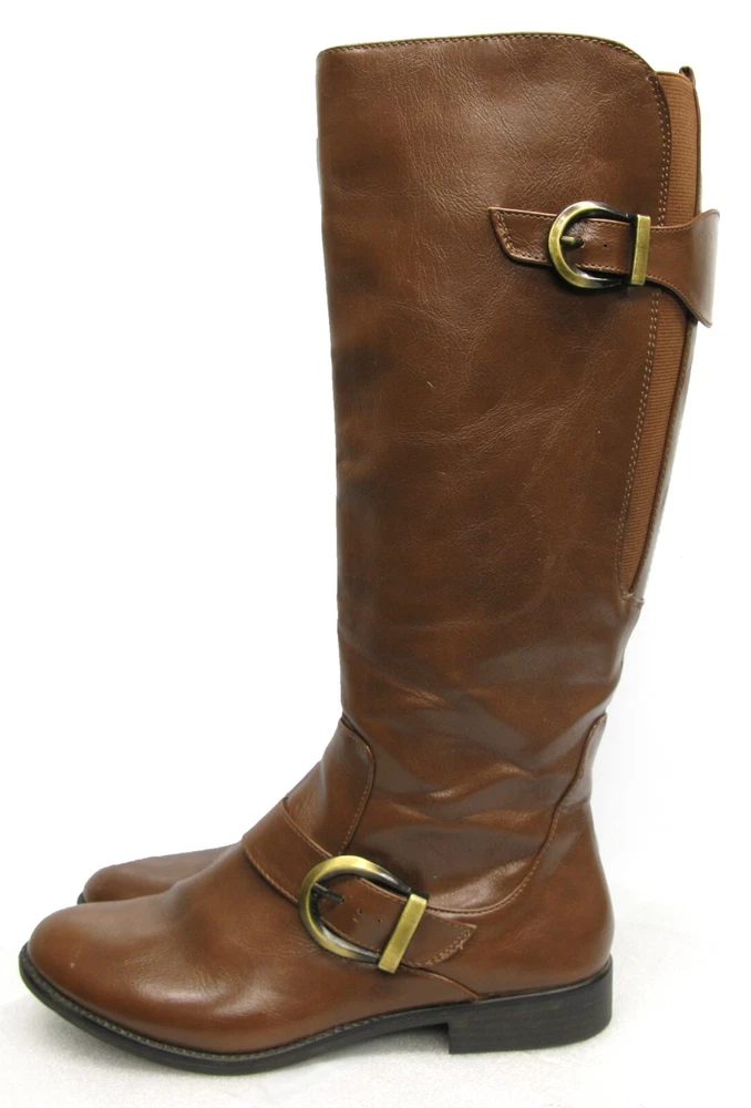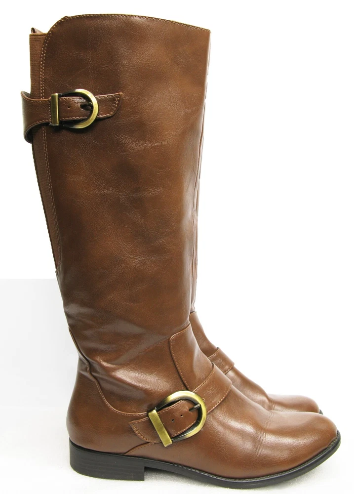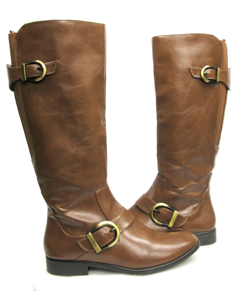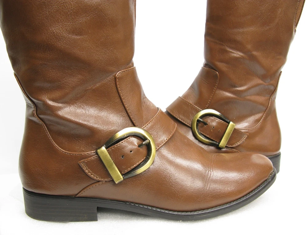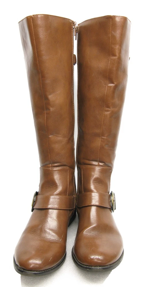 LifeStride Comfort Brown Tall High Zip Faux Leather Buckle Boots Women's 10 M