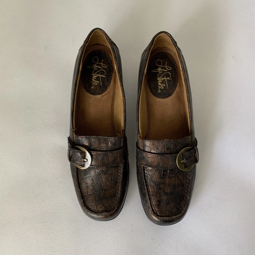 - Life Stride Monopoly Faux Leather Croc Alligator Comfort Slip On Show Brown Embossed Womens Size 6.5 See photos to c ompare your personal measurements to the garment's measurements to ensure proper fit. Excellent preowned condition. FAST Shipping! 1-3 business days. Offers welcome! Tags: everyday fashion stylish trendy classic spring summer fall winter seasons apparel comfy comfortable easy to wear classy casual favorite 14 y2k 80s 90s versatile essential career professional work clothes serious environment business casual interview teacher intern apparel employee worker workwear fashion stylist workplace dress code office attire polished mature sophisticated corporate careerwear businesscore put together light dark academia nerdy gossip girl waldorf oxford soft boy literary librarian professor refined collegiate understated