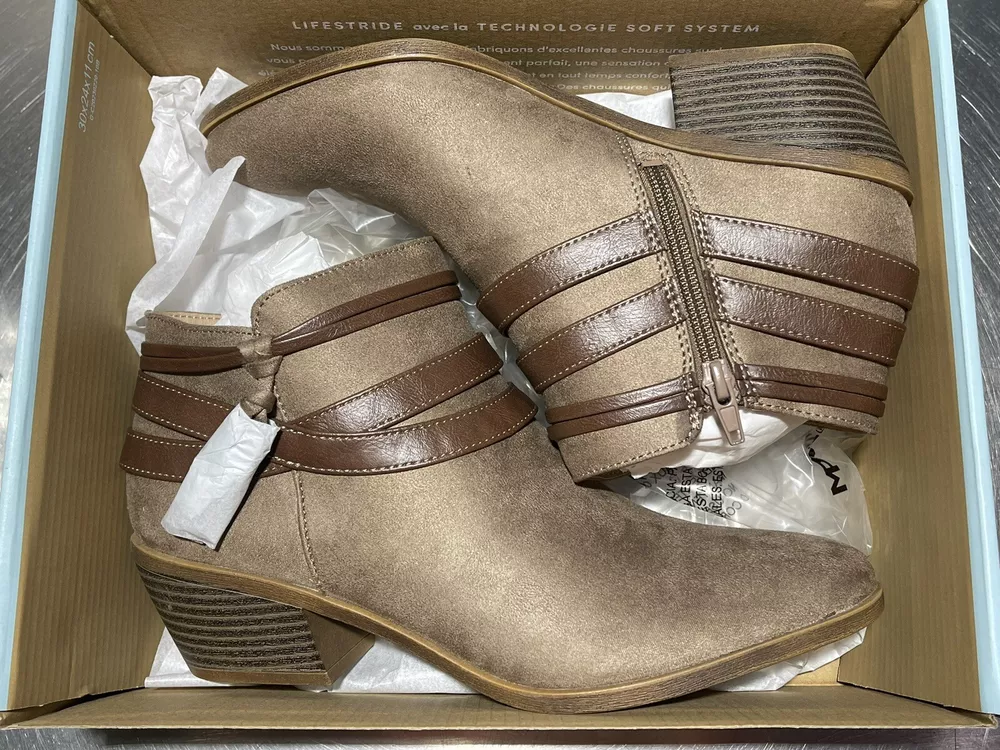 Life Stride Women's US 9 Medium Paloma Mushroom Suede Bootie FLEX well made Man Made upper and sole Side zip Free ship NWOB!
