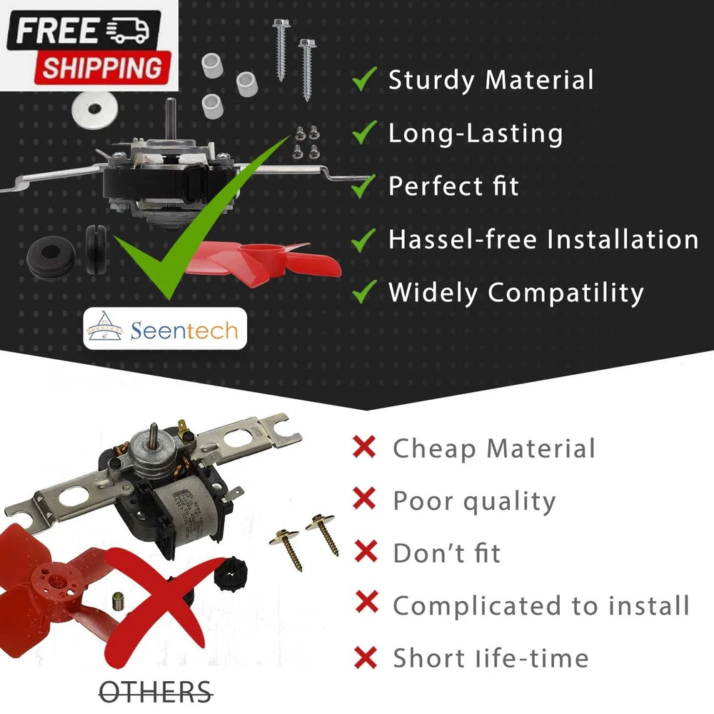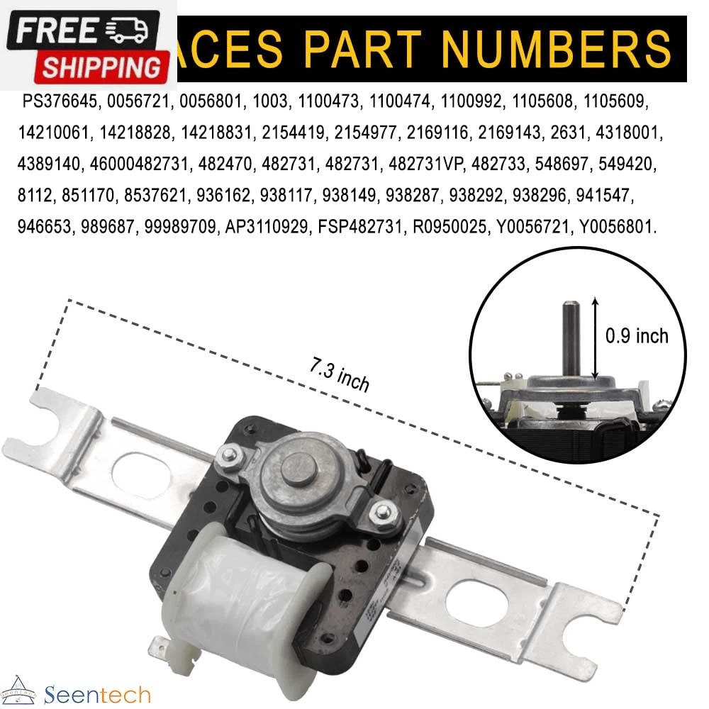 Fast Shipping On All Items 30 Days Money Guarantee Customer Support Excellent Service 100% Satisfaction Satisfaction Guaranteed Lifetime 482731 Evaporator Fan Motor Kit by - Compatible with Whirlpool Kenmore Refrigerators, Freezers – Replaces: 4389140 8537621 4318001 0056721 0056801 1100473 PS376645 AP3110929 R0950025 Specification Item model number 482731 Product Dimensions 8 x 5 x 3 inches; 1.11 Pounds Voltage 120 Volts Horsepower 26 Watts 5.0 inches x 8.0 inches x 3.0 inches. Weight: 1.11 lb Item Description MODEL NUMBER: 482731 Evaporator Fan Motor Kit. Replace: 936162, 938117, 938149, 938287, 938292, 938296, 941547, 946653, 989687, 99989709, AP3110929, FSP482731, R0950025, Y0056721, Y0056801, PS376645, 0056721, 0056801, 1003, 1100473, 1100474, 1100992, 1105608, 1105609, 14210061, 14218828, 14218831, 2154419, 2154977, 2169116, 2169143, 2631, 4318001, 4389140, 46000482731, 482470, 482731, 482731, 482731VP, 482733, 548697, 549420, 8112, 851170, 8537621 EASY TO INSTALL: Work with brands Kenmore, Whirlpool, Roper, Estate, Caloric, Amana . Fits Models: 1068364792, 1068370570, 1068374490, 1068374742, 1065730523, 106722540, 106725360, 106727300, 1067600303, 1067600323, 1067602221, 1068364763, 1068364775… EASY DIY FIX: 1- Evaporator fan motor with mounting bracket, 1- push-on fan blade, 2- 8 mounting screws, 2- mounting grommets and 2- sleeves. HIGH-QUALITY PART: The replacement part is made from durable high quality material and well-tested by the manufacturer - Ensure long-lasting and effective performance. This part fixes the following symptoms: Noisy , Fridge too warm , Freezer section too warm, Fridge and Freezer are too warm. 𝗖𝗢𝗡𝗙𝗜𝗗𝗘𝗡𝗧 𝗣𝗨𝗥𝗖𝗛𝗔𝗦𝗘𝗦: Enjoy a 30-day return window on your purchase. Your satisfaction is our priority. If you have any questions, please don't hesitate to contact our customer service team. Product Description 482731 Evaporator Fan Motor Kit The evaporator is found in the back of the freezer. Includes : 1 evaporator fan motor with mounting bracket, 1 mounting bracket, 2 mounting grommets, 2 sleeves, two #8 mounting screws, and a push-on fan blade. Replaces Part Number: 936162, 938117, 938149, 938287, 938292, 938296, 941547, 946653, 989687, 99989709, AP3110929, FSP482731, R0950025, Y0056721, Y0056801, PS376645, 0056721, 0056801, 1003, 1100473, 1100474, 1100992, 1105608, 1105609, 14210061, 14218828, 14218831, 2154419, 2154977, 2169116, 2169143, 2631, 4318001, 4389140, 46000482731, 482470, 482731, 482731, 482731VP, 482733, 548697, 549420, 8112, 851170, 8537621 482731 Evaporator Fan Motor Kit The evaporator is found in the back of the freezer. Includes :1 evaporator fan motor with mounting bracke,1 mounting bracket,2 mounting grommets, 2 sleeves, two #8 mounting screws, and a push-on fan blade. Replaces Part Number: 936162, 938117, 938149, 938287, 938292, 938296, 941547, 946653, 989687, 99989709, AP3110929, FSP482731, R0950025, Y0056721, Y0056801, PS376645, 0056721, 0056801, 1003, 1100473, 1100474, 1100992, 1105608, 1105609, 14210061, 14218828, 14218831, 2154419, 2154977, 2169116, 2169143, 2631, 4318001, 4389140, 46000482731, 482470, 482731, 482731, 482731VP, 482733, 548697, 549420, 8112, 851170, 8537621 482731 Evaporator Fan Motor Kit The evaporator is found in the back of the freezer. Includes :1 evaporator fan motor with mounting bracke,1 mounting bracket,2 mounting grommets, 2 sleeves, two #8 mounting screws, and a push-on fan blade. Replaces Part Number: 936162, 938117, 938149, 938287, 938292, 938296, 941547, 946653, 989687, 99989709, AP3110929, FSP482731, R0950025, Y0056721, Y0056801, PS376645, 0056721, 0056801, 1003, 1100473, 1100474, 1100992, 1105608, 1105609, 14210061, 14218828, 14218831, 2154419, 2154977, 2169116, 2169143, 2631, 4318001, 4389140, 46000482731, 482470, 482731, 482731, 482731VP, 482733, 548697, 549420, 8112, 851170, 8537621 482731 Evaporator Fan Motor Kit The evaporator is found in the back of the freezer. Includes :1 evaporator fan motor with mounting bracke,1 mounting bracket,2 mounting grommets, 2 sleeves, two #8 mounting screws, and a push-on fan blade. Replaces Part Number: 936162, 938117, 938149, 938287, 938292, 938296, 941547, 946653, 989687, 99989709, AP3110929, FSP482731, R0950025, Y0056721, Y0056801, PS376645, 0056721, 0056801, 1003, 1100473, 1100474, 1100992, 1105608, 1105609, 14210061, 14218828, 14218831, 2154419, 2154977, 2169116, 2169143, 2631, 4318001, 4389140, 46000482731, 482470, 482731, 482731, 482731VP, 482733, 548697, 549420, 8112, 851170, 8537621 High Quality, Easy Installation and Quick Solution Durable high quality material Well-tested by the manufacturer Perfect fit Ensure long-lasting Fully assembled for easy installation Compatible for brands include: Kenmore, Whirlpool, Roper, Estate, Caloric, Amana. Wide Compatibility for Model Numbers: 1068364792, 1068370570, 1068374490, 1068374742, 1065730523, 106722540, 106725360, 106727300, 1067600303, 1067600323, 1067602221, 1068364763, 1068364775, etc. Fixes the following symptoms: Noisy Fridge too warm Freezer section too warm Fridge and freezer are too warm Premium Quality: Fits OEM Standards! Easy DIY Fix: Easy to install and will not waste your time. Reliable Products: Effective performance from product and support from us. Wide Compatibility for Model Numbers Fit models: 1068364792, 1068370570, 1068374490, 1068374742, 1065730523, 106722540, 106725360, 106727300, 1067600303, 1067600323, 1067602221, 1068364763, 1068364775, etc. Please reach out to us if you have a question about compatibility. Comment below in the customer questions and answer section or send us a message on the Seentech storefront. We’re happy to help ensure you select the right replacements for your refrigerator. About us We offer the best prices around on high quality products. Our E-store includes media such as books, movies, music and games while offering electronics, toys, sporting apparel, clothing, tools, general home, garden items and more.