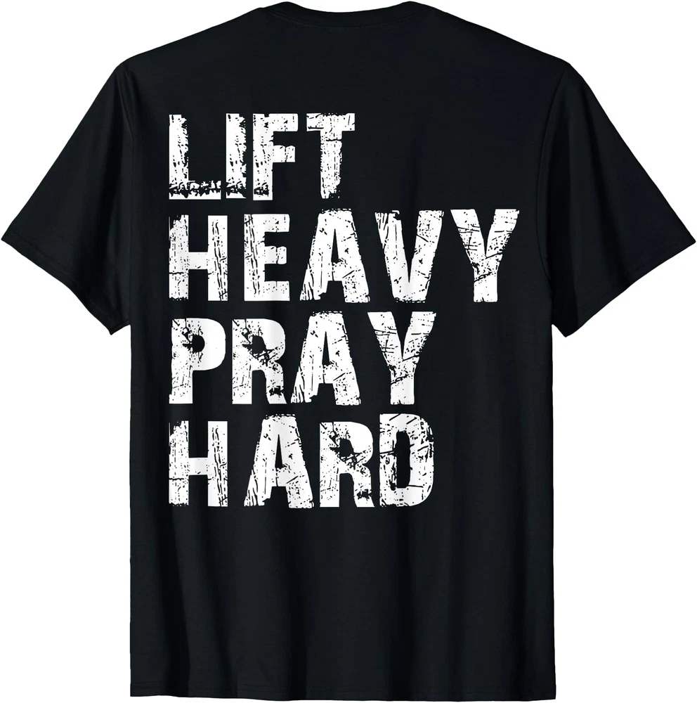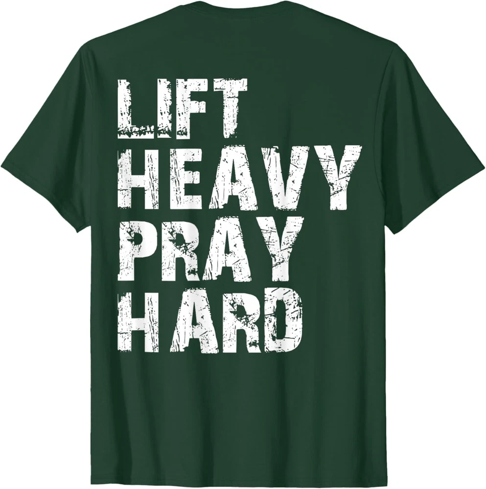 Lift Heavy Pray Hard, Gym Christian Gift For Christian T-Shirt Designed and Printed in USA Product Features: • Classic Look and Feel: This ultra cotton tee offer the timeless appeal of traditional cotton. The high-quality print enhances its casual appearance. • Material: Made from 6.1-ounce, 100% cotton. (Note: Dark Heather variant is 50% cotton, 50% polyester.) • Durability: Features double-needle stitching on the neck, sleeves, and hem for added durability. Designed for a roomy, unisex fit. • Print Type: DTG (Direct to Garment) • Manufacturer: Gildan 5000, 5000b (Made in USA) Shipping Information: • Handling Time: With POD(Print-On-Demand) product model, we typically require about 3 business-days handling time before shipping. In most cases, our handling time’s , rang e from 1-2 business days. • Delivery Time: • USA: Approximately 2 -6 business days • Canada: Approximately 6-10 business days (We currently don’t offer international Shipping) • Worldwide: Approximately 15-25 business days (We Currently don’t offer international Shipping) • Shipping Carriers: USPS and DHL • Note: Business days exclude weekends and holidays. Return & Exchange Policy: • Quality Guarantee: We stand behind the quality of our products and workmanship . Any defects or errors on our part must result in a refund/ replacement at no charge. • Conditions for Returns: Returns are generally not accepted for user errors such as incorrect selection of sizes, designs, or colors. Returns /Replacements are acceptable for damages such as poor printing results, incorrect size or design caused by us. • Note: Please reach out to us if there are any questions or issue s with your item, we’ll do our best to resolve any issue you might have. Note: • We’re glad to have your support! If you have a moment, y our honest feedback is very valuable to us. Thank you!