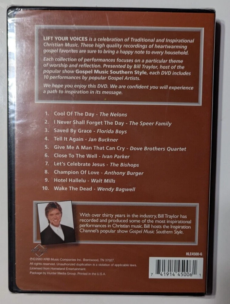 The "Lift Your Voices Joy" DVD is a 2003 Southern Gospel movie featuring The Nelons. It comes in a sealed DVD format with NTSC video format and a tall/DVD case. The DVD is in Region Code 1 (US, Canada) and is rated NR. Produced by KRB Music, this Gospel genre film offers fast shipping for a new, sealed product. See item specifics and pics for more details. We can combine shipping with other DVD's in our store. Orders placed before 2 pm cst are usually shipped the same day. Item is shipped in reinforced packaging for safe delivery.