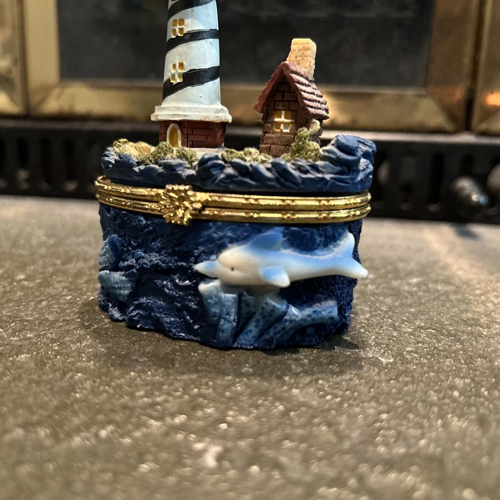 Light House Trinket Box with house and dolphin. Condition is Used. Shipped with USPS Ground Advantage.