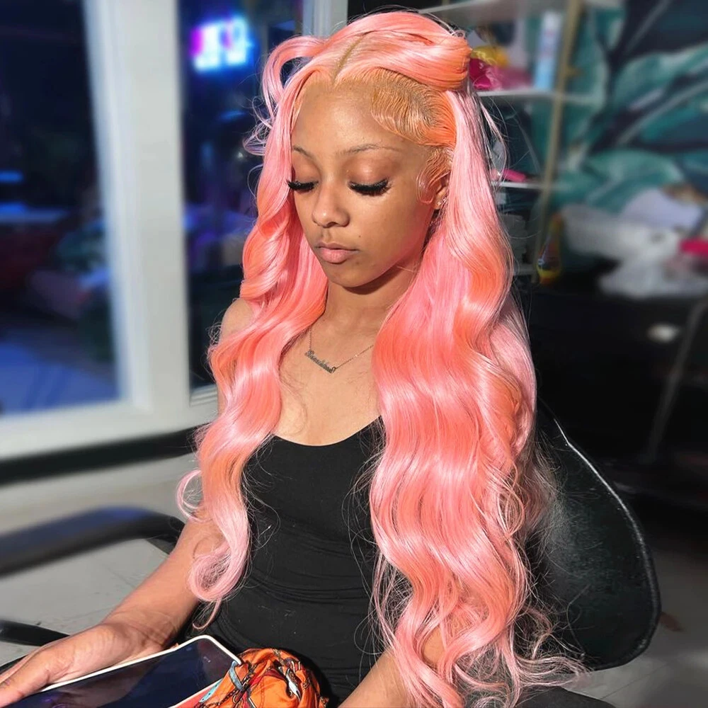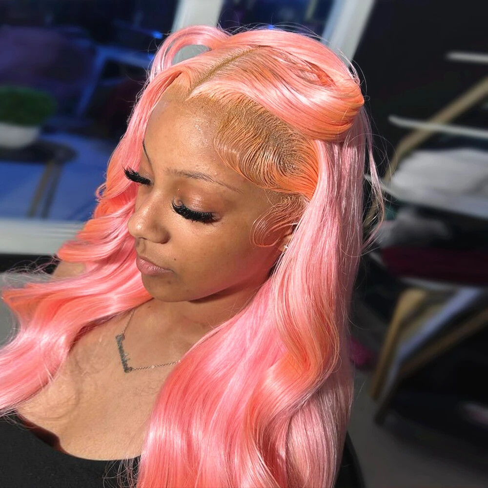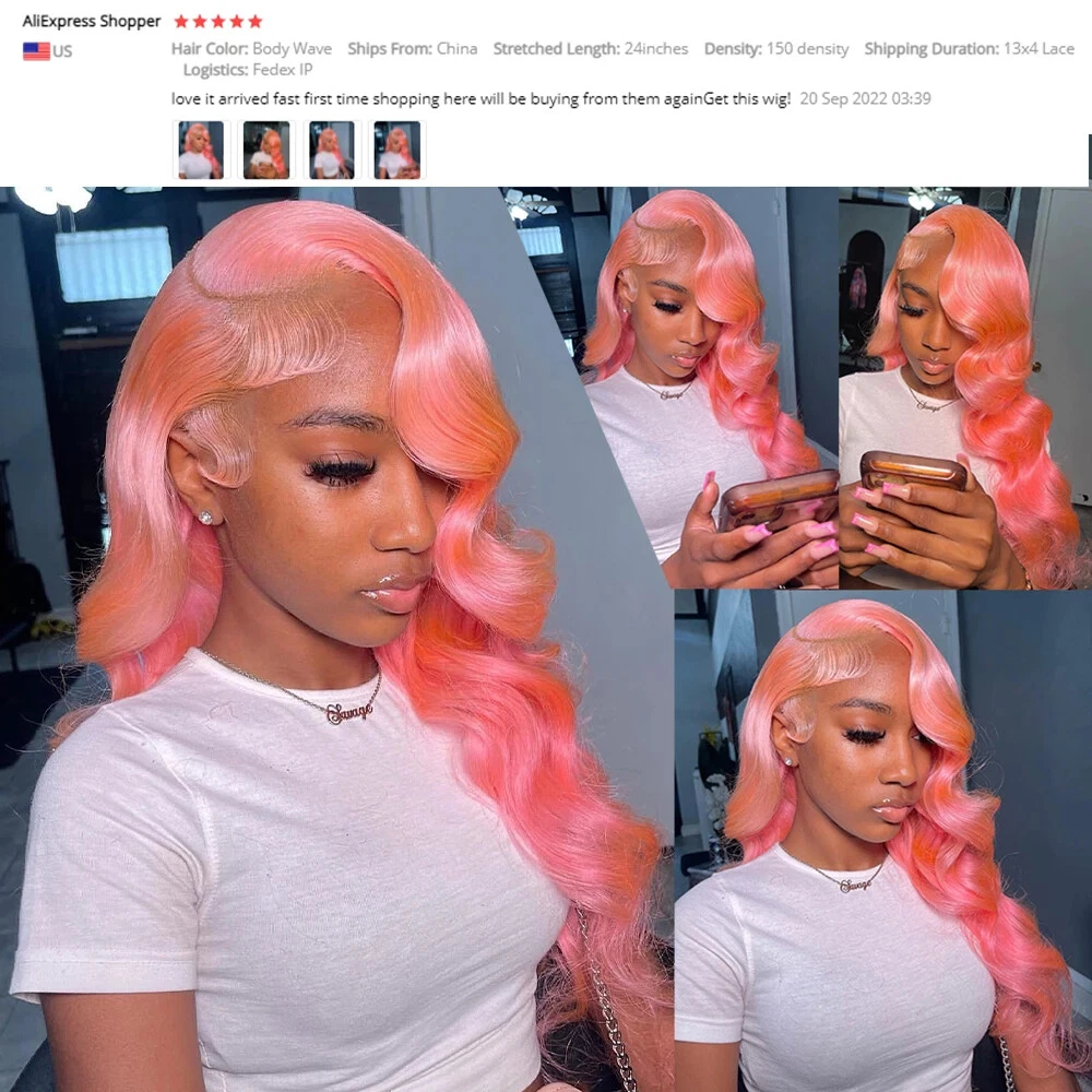 Product Information: Name: Pink Lace Frontal Body Wave Wig Lace Size: 13X4 13x6 Lace front wig Density: 180% 200% Wig Parting: Free Parting Cap Size: Medium Size Hairline: Pre Plucked Lace Color: Medium Brown Shipping Time: 3-5 Days worldwide Free Shipping