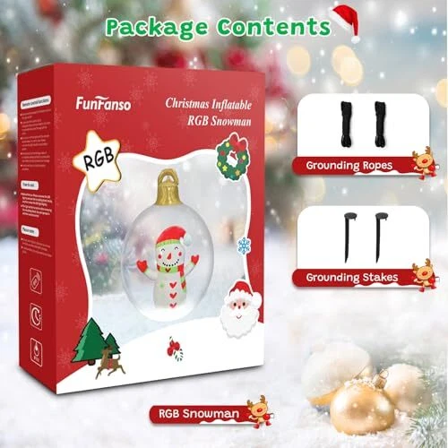 30 Days Return Policy Fast Delivery Trusted seller Light Up Inflatable Christmas Snowman Ball, 24 Inch Large Inflatable Outdoor Decorations Balls, Christmas Xmas Blow Up Ball with 13 Color LED Light for Yard, Lawn, Pool Decorations Product Description 【???????? ?????????】Our inflatable Christmas ball is made of PVC material, tough and practical, it is effective against the elements and can accompany you winter after winter. Innovative dual safety nozzle system design ensures fast and stable inflation experience, easy to use. With IP66 advanced waterproof protection, it will bloom peacefully even on snowy winter nights, adding long-lasting sparkle to your Christmas decorations. 【???????? ????? ??????????】The giant light up Christmas inflatable ball comes with subtle accessories that take holiday decorating to a new level. It can easily display brilliant lights - 13 exquisite gradient dreamy shades, making every moment of light and shadow change an unrepeatable and wonderful moment, awakening every surprise and expectation in winter. 【????????? ??????????】To adapt to various terrains and environments, the 24 inch light up PVC inflatable snowman ball is equipped with 2 strong ground stakes and 2 nylon ropes up to 27.5 inches long, which can be easily secured to dirt, gravel, and lawns. Hanging holes design gives you unlimited creative layout possibilities, you can hang it from tree branches, balconies or ceilings to create a unique landscape suspended in the air. 【?????????? ??? ???】First, open the inflation hole of the blow ups christmas decorations and slowly inflate it to the proper size. Next, unscrew the LED light unit and remove the white insulating piece inside the light. Finally, install the LED lights properly on the bottom of the inflatable Christmas yard decoration ball. 【???? ????? ?? ???????????】Our Christmas inflatable ball is ideal for patio, garden, outdoor tree, lawn, porch, pool, balcony, Christmas party, etc. It is not only the highlight of outdoor decorations, but also can be used as a cozy presents to bring surprises to your family members, friends, neighbors, and co-workers. The vibrant colors and sharp details that bring the magic of Christmas to life, these are going to be great for decorating with come Christmas time. Shipping Returns Payment Shipping Shipping is FREE to all addresses other than APO/PO boxes in the lower 48 states. All our stock ships from US-based warehouses. Shipped via USPS or UPS (depending on location and package weight) Unless stated otherwise, all orders will ship within 24-72 hours of your payment being processed. Check our feedback to see the great reviews of FAST shipping we offer. Returns As our valued customer, we will do our best to make sure the product you receive arrives to you on time and as expected. If you are not satisfied with your purchase, please contact us within 30 days of receiving your order to process a return. Payment We currently accept payment via eBay managed payments only. Once payment is cleared, we will dispatch your shipment within 1-3 business days. Please refer to the "Shipping" tab for more information regarding shipping speed to your destination.