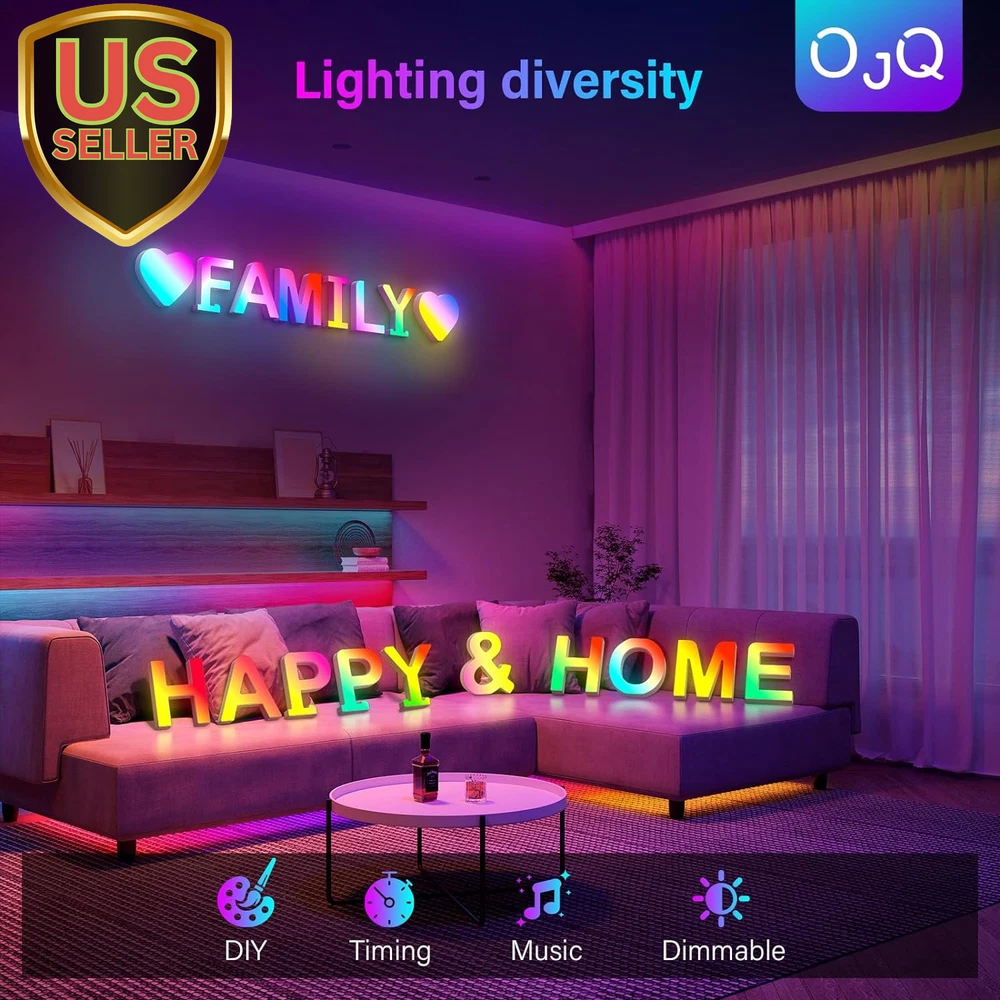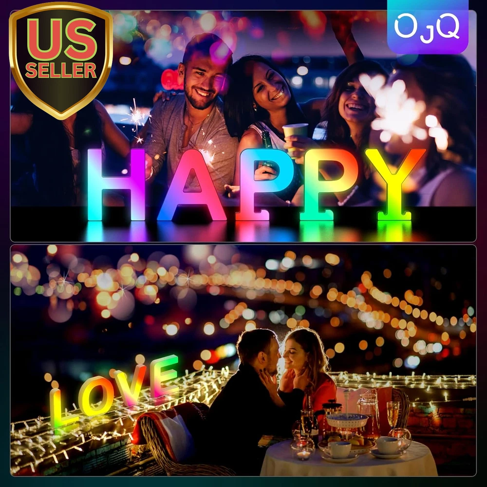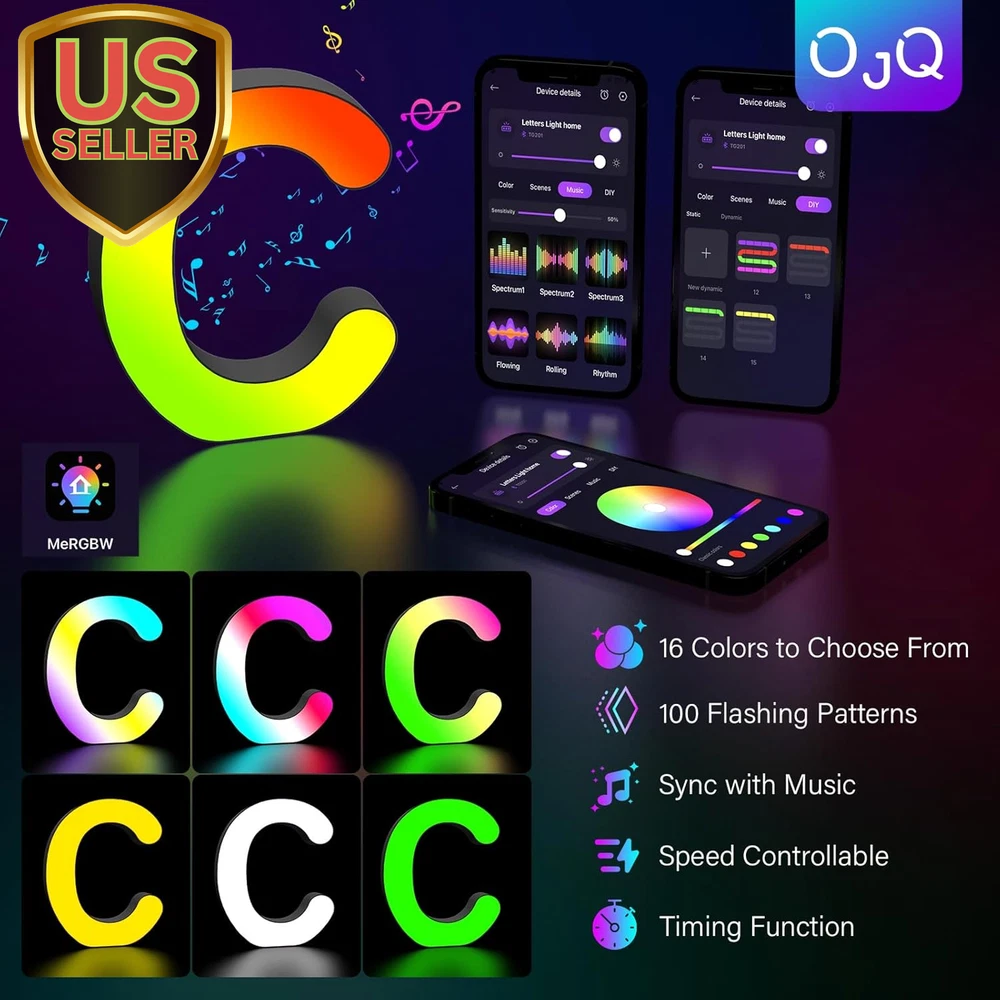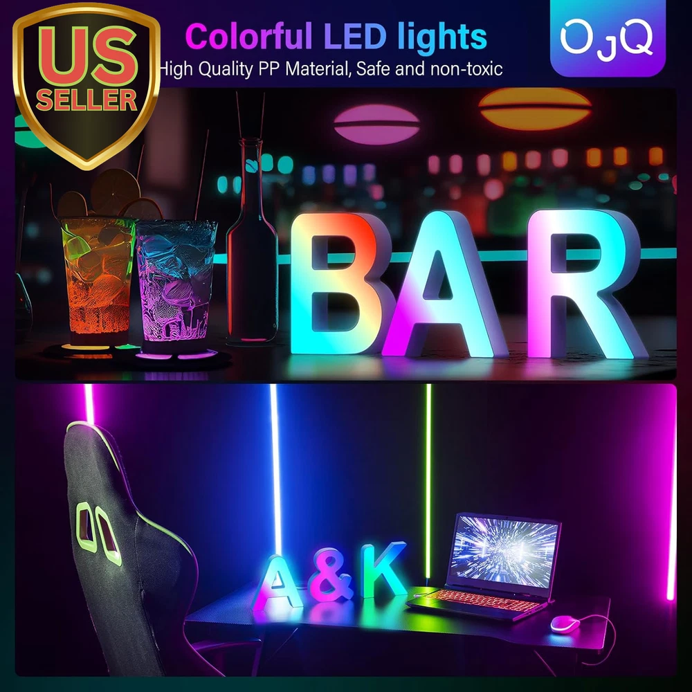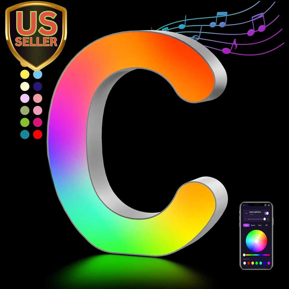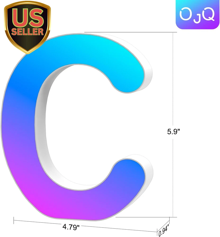 Store New Arrivals Add to Favorite View Feedback Contact Light up Letters LED Letter - Bedroom Lighted Letter Colorful Glitter Alphabet Music Sync Color Changing Letters for Boy Girl Gift Birthday Christmas Wedding Bar Wall Night Light (C) Description Item model number A1 Light Source Type LED Style Letter-C Number of Items 28 Power Source Corded Electric Number of Light Sources 28 Country of Origin China Batteries Included? No Lighting Method Adjustable Lamp Type LED Number of Pieces 28 Room Type Bedroom, Living Room, Dining Room, Kitchen, Kids, Nursery, Bathroom, Home Office Bulb Shape Size ED18 Installation Type Hanging Product Dimensions 1"D x 5"W x 6"H Material Plastic Efficiency Energy Efficient Controller Type Remote Control Finish Type Glitter Specific Uses For Product Bedroom, Living Room, Dining Room, Kitchen, Kids, Nursery, Bathroom, Home Office Bulb Features Dimmable, auto on/off, can be recycled. Indoor/Outdoor Usage Indoor Control Method Remote Water Resistance Level Not Water Resistant Batteries Required? No Item Weight 4 ounces Connectivity Technology USB Connectivity Protocol Bluetooth Special Features Dimmable, auto on/off, can be recycled. Special Feature Dimmable, auto on/off, can be recycled. Shade Height 5.9 Inches Part Number JJU-314 Shade Color Multicolor Mounting Type Wall Mount Color C Wattage 5 watts Is Cordless? No Base Material light up letter Is Waterproof false Shape Letter Voltage 5 Volts (DC) Recommended Uses For Product Decoration Shade Material Plastic Finish types Glitter Included Components Light up Letters Switch Type Remote Sync with Music: The new generation LED Letter Lights feature a high-sensitivity pickup microphone to accurately capture rhythm changes, easily sync your favorite songs with these Music Alphabet Lights and take your party to the next level. As the beautiful melody begins to play, the LED light will flash rapidly with the rhythm of the music. Whether you want to start a crazy party, indulge in exciting, intense computer games or create romance. Smart APP and DIY: LED letter lights can be freely controlled by remote control or smart APP, with hundreds of different colors and rhythm light effects. The LED lights are colorful, durable and adjustable in brightness, you can also DIY your own unique colors and combinations to suit the ambience of the room Light Up Your World with OJQ Letter Lights: 26 letters and 2 symbols offer endless possibilities for DIY creation. Beautiful home decor and dorm decor for girls or boys.Using the included self-adhesive tape and free punch screws Spell out any name or phrase with these wonderful glowing letters like "BAR" on a wine rack, "LOVE" at a wedding or add initials in a kids room for bedroom, home, kitchen, wall, desk, games room etc. Great for Christmas, Halloween, parties and more Specifications: Approximate size (W x H x D): 6.17"x 5.9"x 1" Made of ABS material, eco-friendly and non-toxic, no battery required,can be powered by USB power bank or socket, no need for extra charging for long-lasting light . There are hanging holes on the back, which can be displayed alone or hung on the wall. Perfect After-sales Service: Send the warmest wishes to your family or children, and enjoy the charm of light and shadow in the dark! We believe in our products, and so do our customers. If you are not satisfied, we will provide you with the most complete 24H online customer support and unconditional return and exchange services. Product Description The video showcases the product in use. The video guides you through product setup. The video compares multiple products. The video shows the product being unpacked. OJQ Light Up Letters Bedroom Lighted Letter Colorful Glitter Alphabet Music Sync Color Changing Letters for Boy Girl Gift Birthday Christmas Wedding Bar Wall Night Light Home Gift Colorful Glitter Alphabet Music Sync Color Changing Letters for Boy Girl Gift READ letter light Bedroom Lighted Letters Colorful Glitter Alphabet BAR When a beautiful melody starts to play, the LED lights will flash rapidly with the rhythm of the music. Whether you want to throw a wild party Light Up Letters RGB Letter <