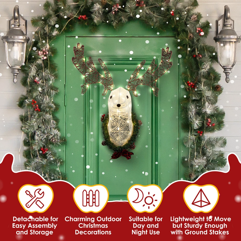 Lighted 39 Inch Reindeer Head Wreath Holiday Decor for Indoor Outdoor Use