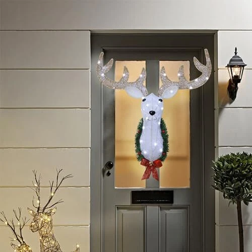 30 Days Return Policy Fast Delivery Trusted seller Lighted Christmas Wall Decor Reindeer Head, 28" Pre-Lit 3D Rudolph Hanging Wreath with Battery Operated, 8 Modes & Timer, Light Up for Front Door Window Indoor Outdoor Festive Xmas Holiday Product Description Christmas Garden Decorations: Decorate your garden with our lighted 3D Rudolph head with wreath wall hanging decor in the coming up Christmas. vivid posture make the reindeer looks more attractive and lovely, build-in 35 LED white lights, create a glowing nighttime display, bringing you and your guests into a warm Christmas world, and suitable for multiple use for indoor outdoor decorations. Size- 25" L x 10" W x 28" H 8 Lighting Modes & Timer Function: The light has 8 lighting modes for you to choose - Combination, In waves, Sequential, Slow Glow, Chg/Flash, Slow fade, Twinkle/Flash, Steady on. Comes with built-in auto timer function(6 hours On and 18 hours Off). If you turning on the light (any lighting mode) at 6 p.m. in the evening, and it will turn off at 12 a.m. at midnight, then auto on at 6 p.m. in the evening, this cycle repeats itself and infinitum, no need to reset it everyday High Quality: The lighted eye catching holiday decorations is made of high quality metal frame and covered in tinsel fabrics, which is very strong and long lasting, can withstand all types of weather conditions. Brighten up your Christmas decor by creating an attractive focal point in your mantel, wall, window or front door Easy to Assemble: This adorable Christmas wall decor requires a simple installation as the picture shown, three-Dimensional design of Christmas mantel deer head makes for easy to set up. Comes with 2 sticky hooks, 2 keyhole brackets on the back of the Christmas wall mounting shield makes it easy to hang up your lighted deer head. 6 plastic cable ties for more stable Great Christmas Gift: Decorate our lighted 3D metal reindeer hanging wreath to anyw you can place, you will be fast on your way to hosting a wonderful Xmas celebration! Each is unique art for making them great for any outdoor space such as lawn, front porch, yard, garden. Adding a whimsical touch to Christmas indoor and outdoor decorations Shipping Returns Payment Shipping Shipping is FREE to all addresses other than APO/PO boxes in the lower 48 states. All our stock ships from US-based warehouses. Shipped via USPS or UPS (depending on location and package weight) Unless stated otherwise, all orders will ship within 24-72 hours of your payment being processed. Check our feedback to see the great reviews of FAST shipping we offer. Returns As our valued customer, we will do our best to make sure the product you receive arrives to you on time and as expected. If you are not satisfied with your purchase, please contact us within 30 days of receiving your order to process a return. Payment We currently accept payment via eBay managed payments only. Once payment is cleared, we will dispatch your shipment within 1-3 business days. Please refer to the "Shipping" tab for more information regarding shipping speed to your destination.