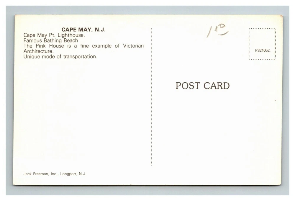 Lighthouse, Pink House, Beach, Tractor Train, Cape May NJ Vintage Postcard