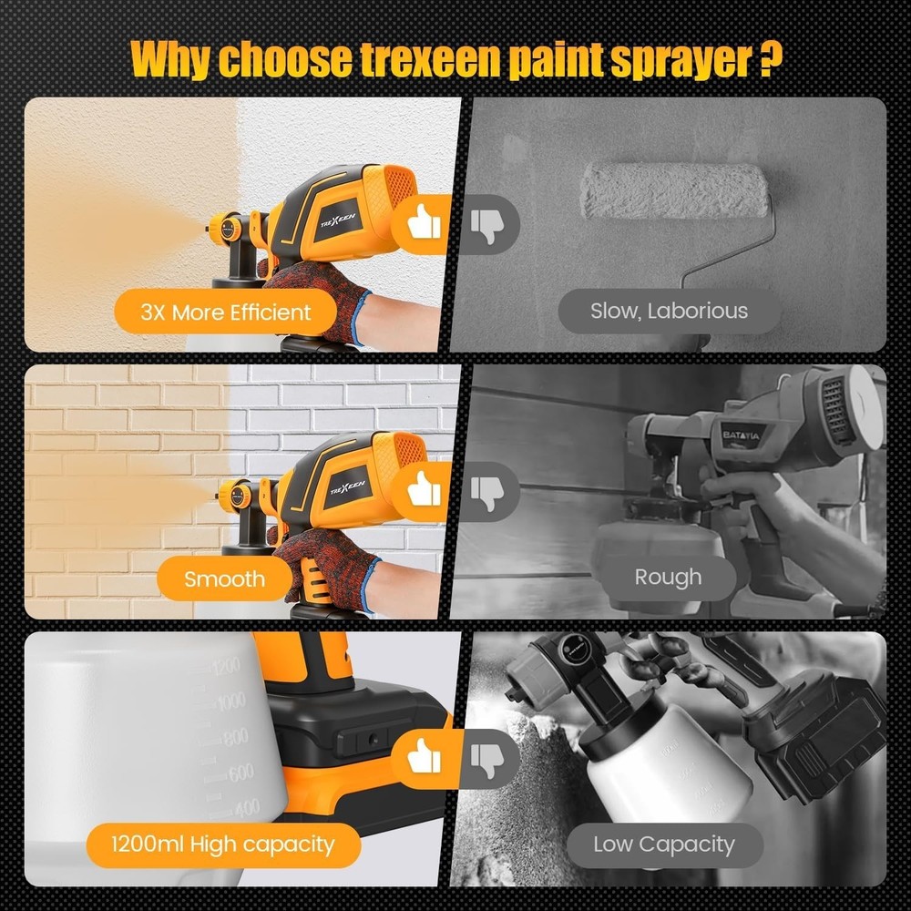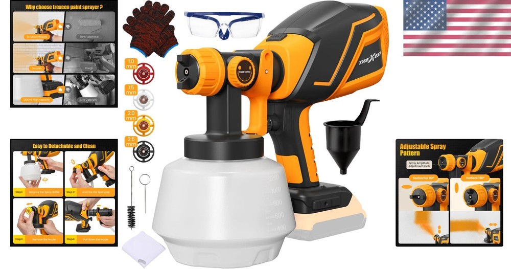 Cordless Paint Sprayer with Smart Leak Prevention and Dual Batteries for Versatile Use