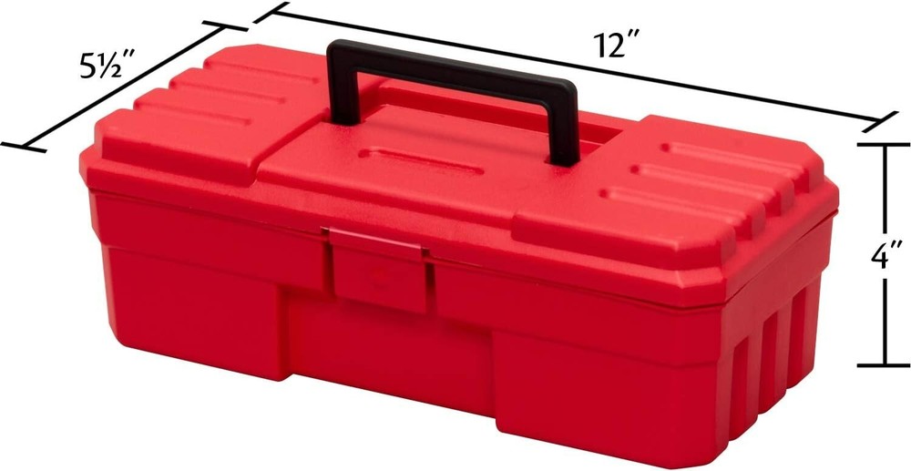 gtin13: Does not apply Type: Tool Box Global Trade Identification Number: 00032903616408 Batteries Required?: No Item Diameter: 12-Inch Color: Red Number of Drawers: 0 Style: Toolbox Capacity: 12 liters Material: Plastic Finish: Glossy Item Length: Plastic Toolbox Maximum Weight Recommendation: 2 Kilograms Number Of Pieces: 1 Size: 12-inch Number Of Compartments: 1 Product Dimensions: 12"l X 6"w X 4"h Batteries Included?: No Item Package Quantity: 1 Features: With Handle, Durable, Water Repellent, High Quality, Industrial-grade Plastic, Rounded Edges for Safety, Large Latch Item Weight: 8.8 ounces UPC: Does not apply Item Height: Plastic Toolbox Included Components: Storage Tool Box Brand: Unbranded Number of Items: 1 Water Resistance Level: Water Repellent Item Width: Plastic Toolbox