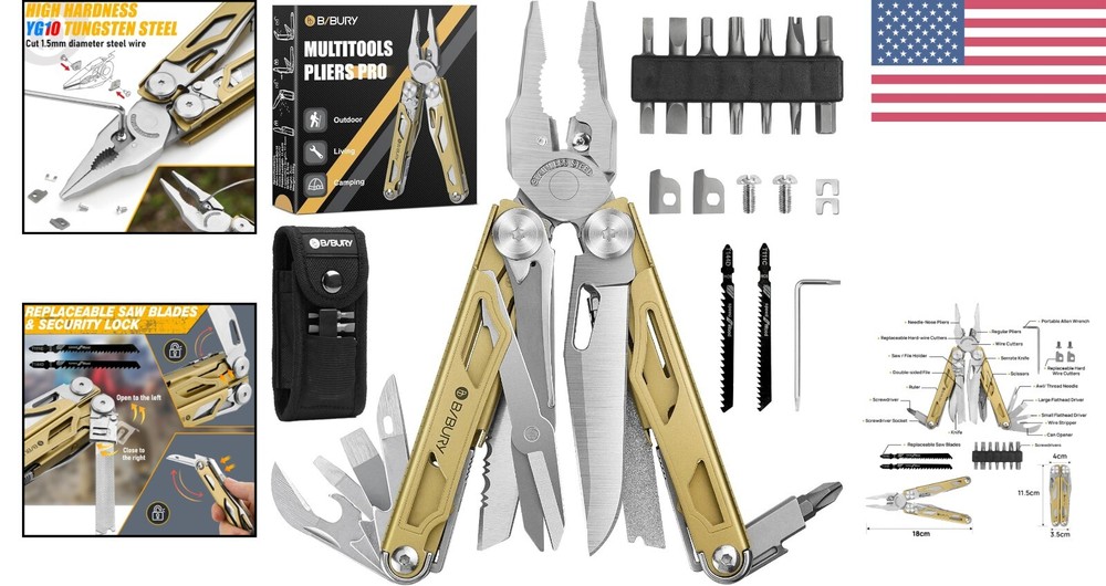 Lightweight Foldable Multitool - 31 Tools for Camping, Hiking & Daily Repairs ‹ › ‹ › ‹ › ‹ › ‹ › ‹ › ‹ › ‹ › ‹ › ‹ › Lightweight Foldable Multitool - 31 Tools for Camping, Hiking & Daily Repairs Product Features: Upgraded Multi Tool Pro: Includes pliers, 16 in 1 screwdriver bits, replaceable hard wire cutter, wire stripper, punch, replaceable saw, scissors, ruler, can opener, bottle opener, files, and more. Replaceable Components: The file and wood saw blade are interchangeable; comes with an extra set of premium alloy wire cutters for long-term use. Durable Construction: Made of high hardness 3Cr13 stainless steel to withstand harsh environments; features replaceable tungsten wire cutter that offers razor-sharp performance. Portable: Designed with a nylon sheath for easy carrying; lightweight and foldable to fit conveniently in your bag. Comprehensive Screwdriver Bit Set: Includes 16 in 1 screwdriver bits to meet your daily DIY needs. Why Choose This Multitool? Are you an adventurer at heart or a daily DIY enthusiast? This Lightweight Foldable Multitool is your ultimate companion. With its 31 essential tools, including precision screwdrivers and durable pliers, it is designed for outdoor activities like camping and hiking, as well as everyday repairs at home. The durability of high-grade stainless steel ensures that it stands the test of time while maintaining performance in harsh conditions. No longer will you need to carry multiple tools; with our multitool, you have everything you need right at your fingertips. The replaceable components add versatility for those extra tasks you never saw coming while you enjoy the great outdoors. Perfect Gift: Looking for a thoughtful gift for the outdoorsman in your life? This multitool is ideal for Father's Day, birthdays, anniversaries, and Valentine's Day. Its unique design and functionality make it a prized possession for anyone who enjoys the outdoors. Customer Assurance: Your satisfaction is our priority! If you encounter any issues, our dedicated after-sales team is readily available to address your concerns and provide tailored solutions. Elevate your outdoor experience and daily repairs with the Lightweight Foldable Multitool – order yours today! Shipping Free & Fast Shipping - We offer free shipping to most of the USA with a normal delivery time of 3-7 days. However, due to the current situation, additional delivery time (up to 3 weeks) may be required for some items. Alternative Carriers - We may use alternative carriers (e.g. USPS, FedEx, UPS, etc.) to ensure your package arrives safely and on time. Due to the use of multiple carriers, we are unable to provide a tracking number automatically. Handling Time - Orders are processed and shipped within 1-2 business days of receiving cleared payment. Shipping Restrictions - Shipping to Alaska, Hawaii, Puerto Rico, Guam, and other US territories may incur shipping charges or delivery restrictions. Please contact us before ordering, or your order can be refunded/cancelled. State Restrictions - There may be restrictions based on your state of purchase. For example, certain items may not be shipped to California due to state regulations. Contact for Tracking Updates - If you require tracking updates or have any concerns about the delivery of your order, please feel free to contact us, and we will be happy to assist you. Return 30-Day Hassle-Free Returns - We want you to be completely satisfied with your purchase. If you are not, you can return the item within 30 days of receiving it for a full refund or exchange. Easy Return Process - To start a return, simply contact us and we will provide you with a prepaid return shipping label and detailed instructions. Restocking Fee - There are no restocking fees for returns. However, the buyer is responsible for return shipping costs if the return is not due to a seller's error. Refund Processing Time - Refunds will be processed within 5 business days of receiving the returned item in its original condition. Payment We accept all major credit cards, PayPal, and Apple Pay for your convenience. Your payment information is secure and encrypted to ensure a safe and seamless transaction. Please complete your payment within 3 days of purchase to avoid any delays in shipping. Feedback Your feedback is extremely important to us. We strive to provide the best products and customer service possible. If you are satisfied with your purchase, please take a moment to leave us a positive review. If you have any concerns or issues with your order, please contact us before leaving negative feedback. We are committed to resolving any problems and ensuring your satisfaction. Contact Us If you have any questions or concerns, please feel free to reach out to our customer support team. You can contact us through the eBay messaging system. We are available Monday to Friday, 9:00 am to 5:00 pm EST, and we will do our best to respond to your inquiry within 24 hours. Thank you for supporting our small family business! UPC: Not Set Blade Length: Multi Tool Closed Length: Multi Tool Model: Multi Tool Item Weight: 324 grams Overall Length: Not Set Unit Quantity: 1 Tools Included: Plier,Ruler,Scissors,16 in 1 screwdriver bits,Replaceable hard wire cutter,Wire stripper,Punch,Replaceable saw,Can opener,Bottle opener,Files Material: Stainless Steel,3Cr13 stainless steel,Premium alloy,YG10 tungsten steel Blade Material: Stainless Steel,3Cr13 stainless steel,YG10 tungsten steel Features: Corrosion Resistant,Ergonomic Handle,Lightweight,Sheath Included Brand: Unbranded Type: Multi-Tool Color: Golden Number of Tools: More Than 15 Blade Edge: Straight Edge Country/Region of Manufacture: Not Set Manufacturer Warranty: Not Set MPN: Not Set Unit Type: Not Set
