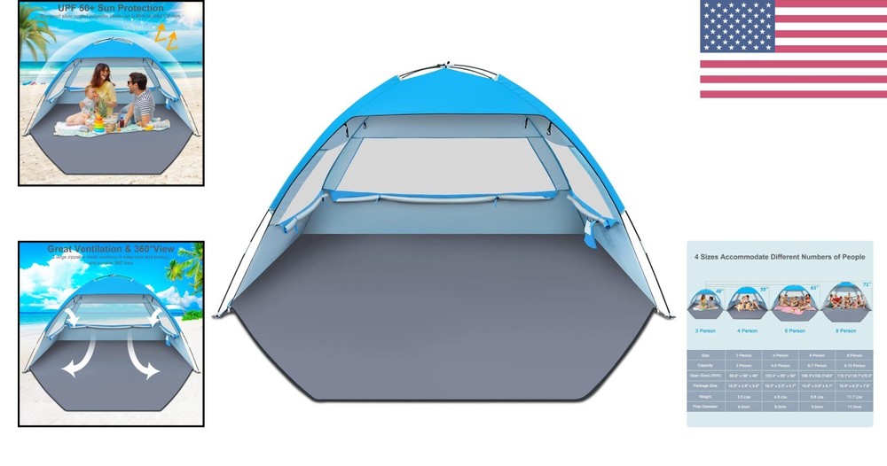 Lightweight Easy Setup Beach Canopy Tent for 3 with UV Protection - Blue < class="slides"> ‹ › ‹ › ‹ › ‹ › ‹ › ‹ › ‹ › ‹ › ‹ › Lightweight Easy Setup Beach Canopy Tent Color: Blue Super Large Space: <> Dimensions: 86.6"L x 59"W x 48"H 30% larger than competitors at a similar price Comfortably accommodates up to 3 people for a perfect beach outing Easy Set Up & Carry: <> Set up in minutes with intuitive design Folds down to travel size: 16.5"H x 3.9"L x 3.9"W Lightweight at just 3.5 lbs with a compact carrying bag, ensuring minimal bulk on your backpack Upgraded & Durable Design: <> Made with high-quality SILVER COATED Fabric for superior UV protection 8.0mm IMPORTED fiberglass frame for enhanced stability and durability, rust-free Maintains shape and support, ensuring long-lasting use Water Repellent & UPF 50+: <> 4-sided ventilation with 3 large mesh windows for optimal airflow Extended floor of 40 inches offers extra activity space Includes 3 curtains for added privacy Water-repellent fabric provides a temporary shelter against light rain Widely Use: <> Ideal for beach, park, lake outings, camping, hiking, and fishing Great for sporting events, music festivals, or relaxing at home Why choose our Lightweight Beach Canopy Tent? If you cherish outdoor moments with family and friends, our Lightweight Beach Canopy Tent is the perfect addition to your collection. Enjoy the extensive space and sun protection while reveling in the comfort of a well-ventilated environment. Our easy setup design allows for spontaneous adventures without the hassle! Step into the shade and elevate your outdoor experiences today - order your Lightweight Easy Setup Beach Canopy Tent! Shipping <> <> Free & Fast Shipping - We offer free shipping to most of the USA with a normal delivery time of 3-7 days. However, due to the current situation, additional delivery time (up to 3 weeks) may be required for some items. Alternative Carriers - We may use alternative carriers (e.g. USPS, FedEx, UPS, etc.) to ensure your package arrives safely and on time. Due to the use of multiple carriers, we are unable to provide a tracking number automatically. Handling Time - Orders are processed and shipped within 1-2 business days of receiving cleared payment. Shipping Restrictions - Shipping to Alaska, Hawaii, Puerto Rico, Guam, and other US territories may incur shipping charges or delivery restrictions. Please contact us before ordering, or your order can be refunded/cancelled. State Restrictions - There may be restrictions based on your state of purchase. For example, certain items may not be shipped to California due to state regulations. Contact for Tracking Updates - If you require tracking updates or have any concerns about the delivery of your order, please feel free to contact us, and we will be happy to assist you. Return <> <> 30-Day Hassle-Free Returns - We want you to be completely satisfied with your purchase. If you are not, you can return the item within 30 days of receiving it for a full refund or exchange. Easy Return Process - To start a return, simply contact us and we will provide you with a prepaid return shipping label and detailed instructions. Restocking Fee - There are no restocking fees for returns. However, the buyer is responsible for return shipping costs if the return is not due to a seller's error. Refund Processing Time - Refunds will be processed within 5 business days of receiving the returned item in its condition. Payment We accept all major credit cards, PayPal, and Apple Pay for your convenience. Your payment information is secure and encrypted to ensure a safe and seamless transaction. Please complete your payment within 3 days of purchase to avoid any delays in shipping. Feedback Your feedback is extremely important to us. We strive to provide the best products and customer service possible. If you are satisfied with your purchase, please take a moment to leave us a positive review. If you have any concerns or issues with your order, please contact us before leaving negative feedback. We are committed to resolving any problems and ensuring your satisfaction. Contact Us If you have any questions or concerns, please feel free to out to our customer support team. You can contact us through the eBay messaging system. We are available Monday to Friday, 9:00 am to 5:00 pm EST, and we will do our best to respond to your inquiry within 24 hours. Buy it now and enjoy a pleasant shopping experience! Features: Lightweight Type: Beach Tent Color: Blue Size: 3 Person