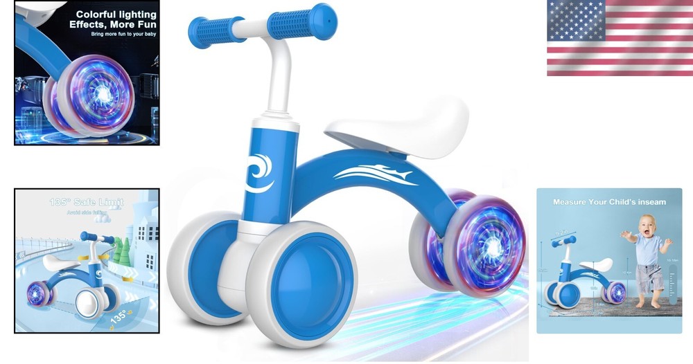 Lightweight & Fun Baby Balance Bike for 1--Old - Easy to Assemble, Safe Play < class="slides"> ‹ › ‹ › ‹ › ‹ › ‹ › ‹ › ‹ › ‹ › ‹ › Lightweight & Fun Baby Balance Bike for 1--Old Easy to Assemble, Safe Play Features: Colorful Lighting Design: Specially designed with colorful lighting in the rear wheel that glows as you ride – no batteries required! The Best Partner for Kids: Ideal for ages 10-36 , promoting fun, joy, balance, coordination, steering, and self-confidence. Safe Riding: No pedals and fully widened closed wheels prevent clamping little feet, with a 135° steering limit to enhance safety and reduce falls. Sturdy & Comfortable: Constructed from durable carbon steel with a soft, non-slip EVA handle and PU seat, ensuring a stable and comfortable riding experience. Easy to Assemble: Our unique buckle design means your balance bike can be assembled in just 3 minutes without tools. Lightweight Design: Weighing only 4.6lbs, making it simple for both kids and parents to carry and enjoy anywhere. Perfect Gift: Well-packaged in a gift box, this bike is the ideal present for 1--old boys and girls, fully safety-tested for peace of mind. Benefits: Encourages active play and physical development. Bright, colorful design stimulates visual engagement. Helps toddlers gain confidence as they learn to balance and steer. Durable and safe materials provide security for little explorers. Easy transportation allows for playtime at home or on-the-go. Why choose our Baby Balance Bike? This Lightweight & Fun Baby Balance Bike is not just a toy; it's a stepping stone for your toddler's development and exploration. Designed with safety in mind, its colorful lighting will captivate their imagination while promoting essential motor skills. With its tool-free assembly and easy portability, you can effortlessly bring joy wherever you go. Gift your child the adventure of riding and the confidence that comes with it! Make playtime unforgettable—order your Baby Balance Bike today! Shipping Free & Fast Shipping - We offer free shipping to most of the USA with a normal delivery time of 3-7 days. However, due to the current situation, additional delivery time (up to 3 weeks) may be required for some items. Alternative Carriers - We may use alternative carriers (e.g. USPS, FedEx, UPS, etc.) to ensure your package arrives safely and on time. Due to the use of multiple carriers, we are unable to provide a tracking number automatically. Handling Time - Orders are processed and shipped within 1-2 business days of receiving cleared payment. Shipping Restrictions - Shipping to Alaska, Hawaii, Puerto Rico, Guam, and other US territories may incur shipping charges or delivery restrictions. Please contact us before ordering, or your order can be refunded/cancelled. State Restrictions - There may be restrictions based on your state of purchase. For example, certain items may not be shipped to California due to state regulations. Contact for Tracking Updates - If you require tracking updates or have any concerns about the delivery of your order, please feel free to contact us, and we will be happy to assist you. Return 30-Day Hassle-Free Returns - We want you to be completely satisfied with your purchase. If you are not, you can return the item within 30 days of receiving it for a full refund or exchange. Easy Return Process - To start a return, simply contact us and we will provide you with a prepaid return shipping label and detailed instructions. Restocking Fee - There are no restocking fees for returns. However, the buyer is responsible for return shipping costs if the return is not due to a seller's error. Refund Processing Time - Refunds will be processed within 5 business days of receiving the returned item in its condition. Payment We accept all major credit cards, PayPal, and Apple Pay for your convenience. Your payment information is secure and encrypted to ensure a safe and seamless transaction. Please complete your payment within 3 days of purchase to avoid any delays in shipping. Feedback Your feedback is extremely important to us. We strive to provide the best products and customer service possible. If you are satisfied with your purchase, please take a moment to leave us a positive review. If you have any concerns or issues with your order, please contact us before leaving negative feedback. We are committed to resolving any problems and ensuring your satisfaction. Contact Us If you have any questions or concerns, please feel free to out to our customer support team. You can contact us through the eBay messaging system. We are available Monday to Friday, 9:00 am to 5:00 pm EST, and we will do our best to respond to your inquiry within 24 hours. Buy it now and enjoy a pleasant shopping experience! Material: Steel,Carbon Steel,PU,EVA Features: Lightweight,Colorful Lighting Design,No Pedal,Soft Seat,Sturdy Design,Non-Slip Handle,135° Steering Limit,Fully Widened Closed Wheel,Easy to Assemble,Portable Bike Type: Balance Bike Department: Unisex Kids Color: Multicolor Item Weight: 4.6 Pounds