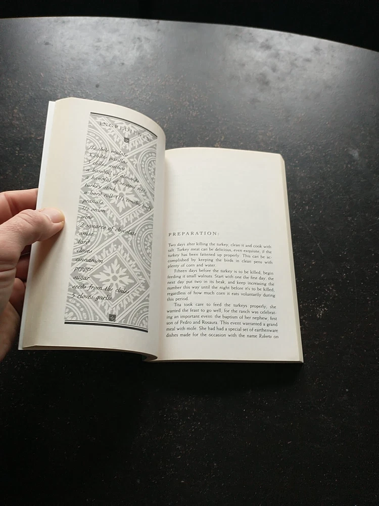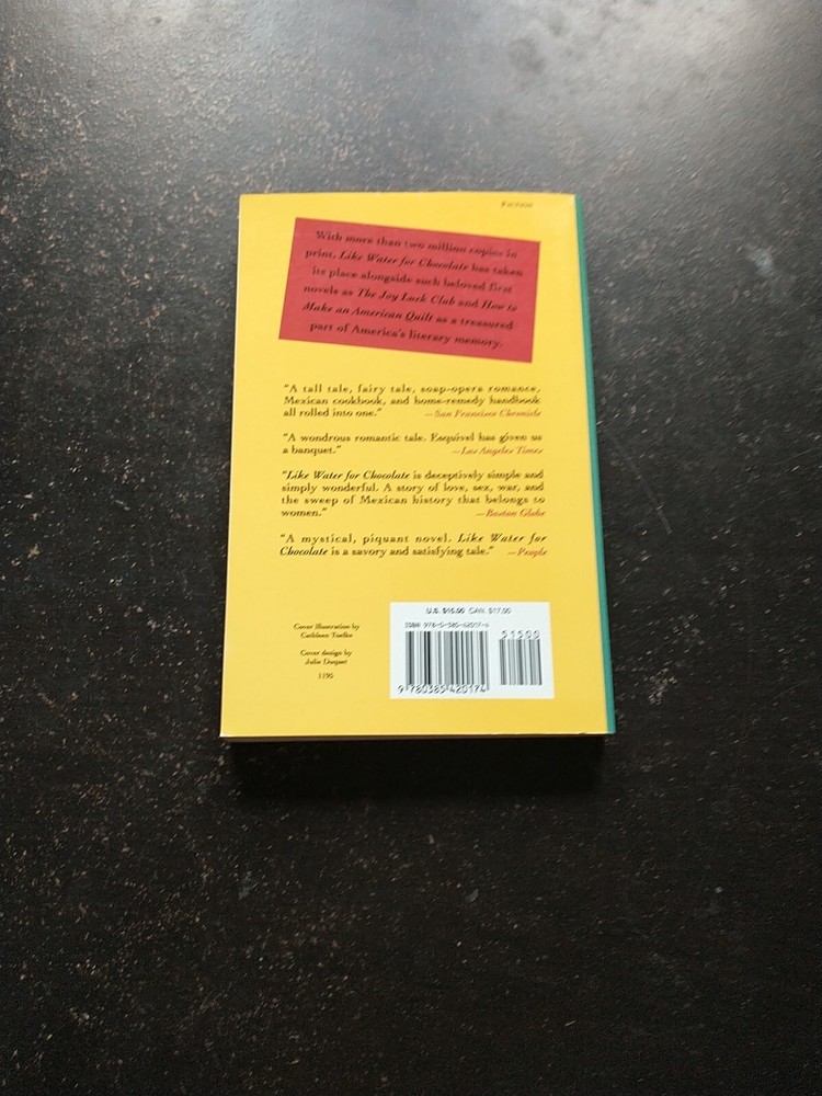 Indulge in a magical journey with "Like Water for Chocolate: A Novel in Monthly Installments with Recipes, Romances, and Home Remedies" by Laura Esquivel. This trade paperback book, published by Knopf Doubleday Publishing Group in 1995, is a captivating read that combines cultural heritage, magical realism, family life, and romance. The book, written in English, has 256 pages and measures 7.9 x 5.2 inches. It is a reprint edition with a weight of 6.6 ounces and a thickness of 0.6 inches. Follow the story of Tita, a talented chef who is forbidden to marry the man she loves because of a family tradition. The novel is a perfect blend of fiction, recipes, and home remedies that will leave you wanting more.