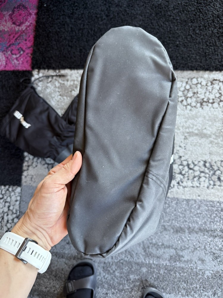Not used! The purpose with the Overboot is to provide increased insulation against cold when standing still or during minor movement. Upper part is made of waterproof and water vapour permeable outer fabric and a lining of warm pile. The bottom part consists of a detachable, insulating inner sole and an abrasion resistant and highly flexible outer sole made of CSM-coated high tenacity Polyamide. Water repellent cotton canvas.