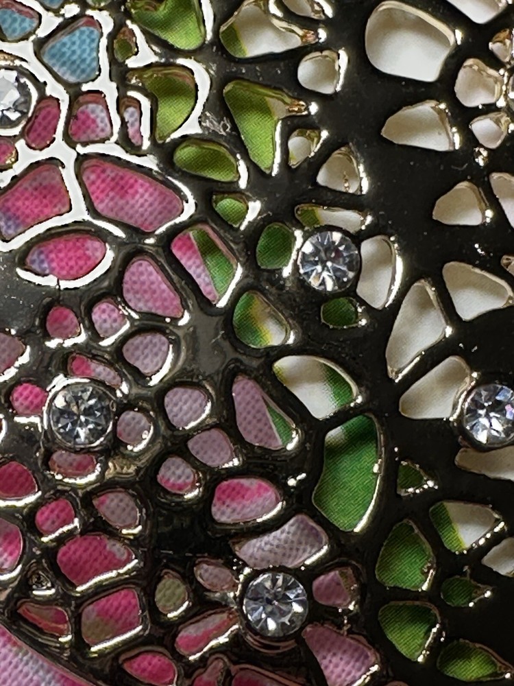 Elevate your style with these stunning Lilly Pulitzer Devine Gold Metallic Drop Earrings. The round white/colorless crystal stones are beautifully set in gold tone metal with intricate lace detailing. Includes a Lilly cloth pouch