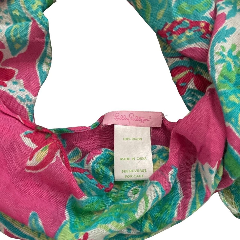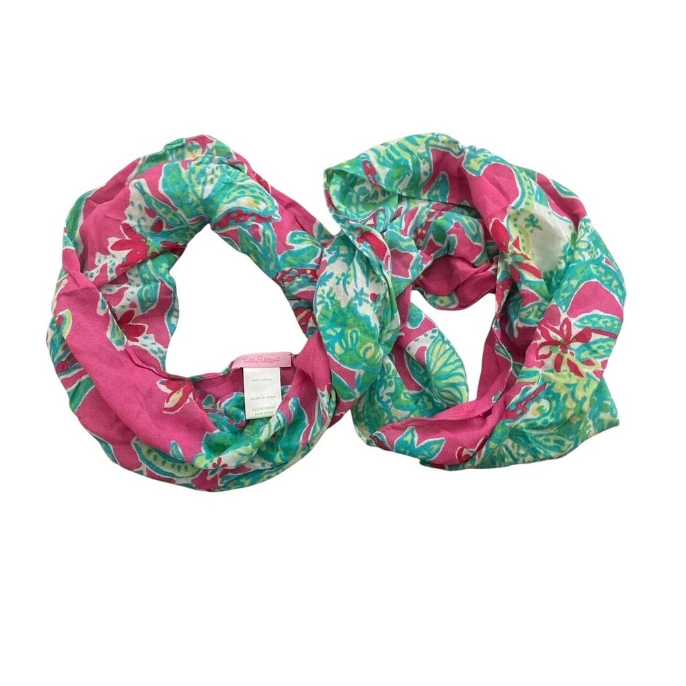 Lilly Pulitzer Hot Pink Green Paisley Patterned Knit Infinity Scarf One Size • Modern • Good condition, regular pre-owned wear. • Rayon • Tagged One Size Width: 13" Length: 25" All photos taken in natural lighting. Color may vary on your monitor/device. Measurements are taken flat and are approximate and have a margin of error of half an inch.