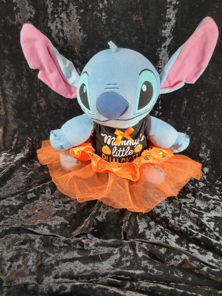 Lilo & Stitch Halloween Disney Plush Toy with " Mommy's Little Pumpkin" on her Halloween Dress. This little bundle is very soft and in very good condition. Please let me know if you want more pictures or have any questions. Each item is carefully packaged to prevent any damage and is shipped immediately with tracking.
