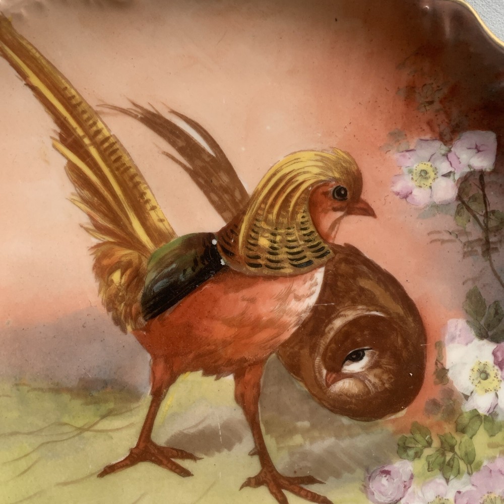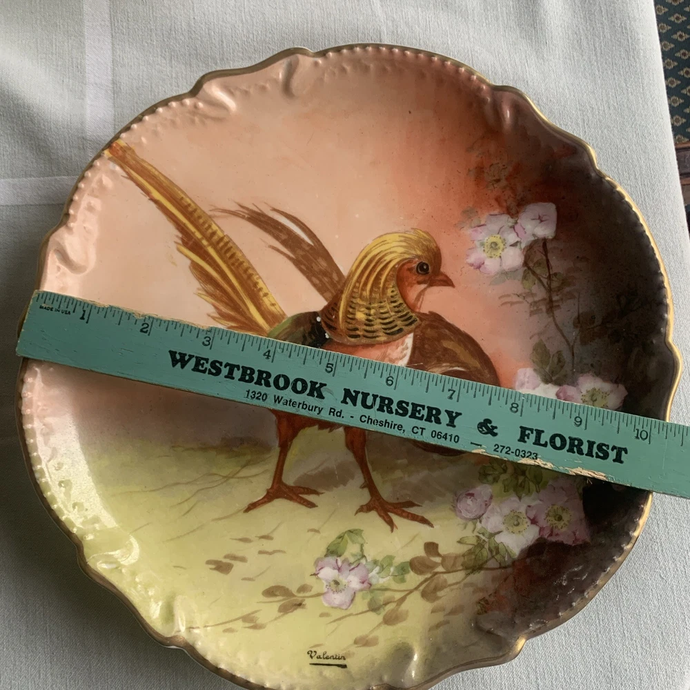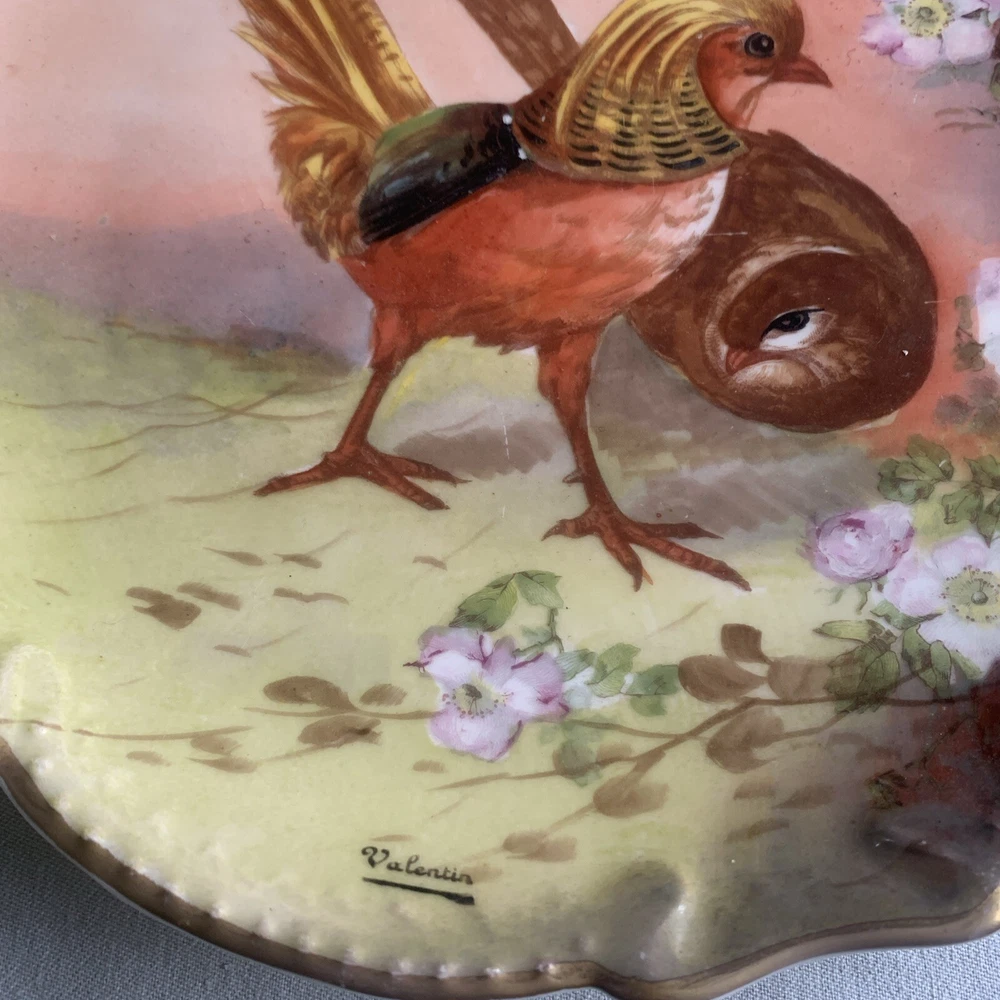 This beautiful Limoges wall charger is a stunning piece of decorative art that will enhance any room. The charger features a pair of quails and is artist signed, making it a unique addition to any collection. The round shape and multicolor design are perfect for all occasions, and the 10.5 inch diameter makes it a statement piece. Made in France between 1900-1919, this antique charger is handmade and part of the Game Birds product line. It is a vintage item that adds a touch of French culture to any decor. This Limoges charger is perfect for collectors and those who appreciate decorative art. Please see all photos for the best description. No cracks or chips. Signed on bottom as shown. Please ask any and all questions.
