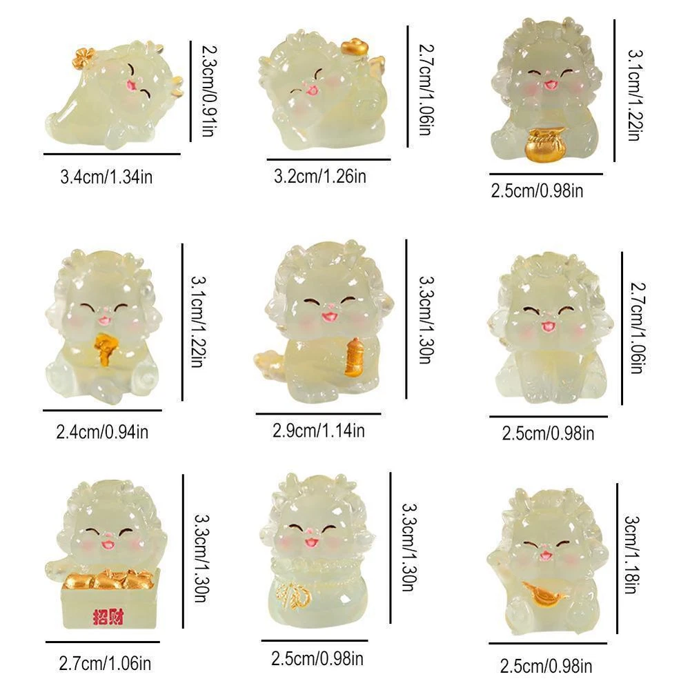 Description Description&Preview shipping&policy Description: Product Description: 1. Product name: 2024 New Year's noctilucent dragon ornament 2. Product size: A:3.4*2.3cm(1.34*0.91in) B:3.2*2.7cm(1.26*1.06in) C:2.5*3.1cm(0.98*1.22in) D:2.4*3.1cm(0.94*1.22in) E:2.9*3.3cm(1.14*1.30in) F:2.5*2.7cm(0.98*1.06in) G:2.7*3.3cm(1.06*1.30in) H:2.5*3.3cm(0.98*1.30in) I:2.5*3cm(0.98*1.18in) 3. Product color: as shown in pictures(noctilucent) 4. Product material: resign Describe: 1. Adorable Design: This New Year's noctilucent features a cute little dragon figurine that will bring joy and charm to any space. 2. Glow in the Dark: The ornament is designed with special materials that allow it to emit a soft and soothing glow in the dark, creating a magical and enchanting atmosphere. 3. Ideal Gift: This cute dragon figurine makes a wonderful gift for friends and family, spreading joy and good wishes for the New Year. 4. High-Quality Craftsmanship: The dragon figurine is meticulously crafted with attention to detail, ensuring durability and longevity. 5. Versatile Decor: This adorable dragon figurine can be placed on a shelf, desk, or bedside table, adding a touch of whimsy and charm to any room. Notes: 1. As we all know, different computers display different colors, and the actual color may be slightly different from the picture below. 2. Due to manual measurement, the size may have a few centimeters error Package Included: 1 pc dragon ornament Preview: Thank you for your purchase Problems? You can follow below process to contact us. There is a time zone difference,but we will do our best to quickly response to your questions: Shipping ● We will arrange shipping for you within 24 Hours after payment cleared except the holidays. ● We always send the item to the address you give us on Payoneer to ensure the security of the item. If you have changed your address, or want us to ship to another address, please change to the new address when you pay us with Payoneer, otherwise we will not be responsible if the package is lost. Payments We accepts Payoneer only If you have any questions about the payment,please contact us through eBay message. Import Duties In case some duty is due Upon delivery, it is your responsibility to meet that expense and this may cause delays to delivery schedule and you may have to pickup goods at the customs office. Terms & Conditions By bidding on this item,the Buyer agrees to all of the terms and conditions as outlined in this listing .please ensure to read and agree to All eBay terms and Conditions before bidding. All pictures are for illustration purpose only and Colours may vary slightly. Our store obeys all eBay Rules and Policies. Returns Policy To Return an item you must contact us and take photos of your item to clearly show any damage or unusual aspects of it. Approved returns will be subject to inspection on arrival. Items must be returned in original condition with all original packaging. All shipping and handing charges are non-refundable Return delivery costs are the responsibility of the buyer. We will cover the cost if sending replacement/repaired items. Within 7 days after receiving your products, we offers a no-hassle 7 day exchange/replace only if your items are found to be defective by manufacturer.
