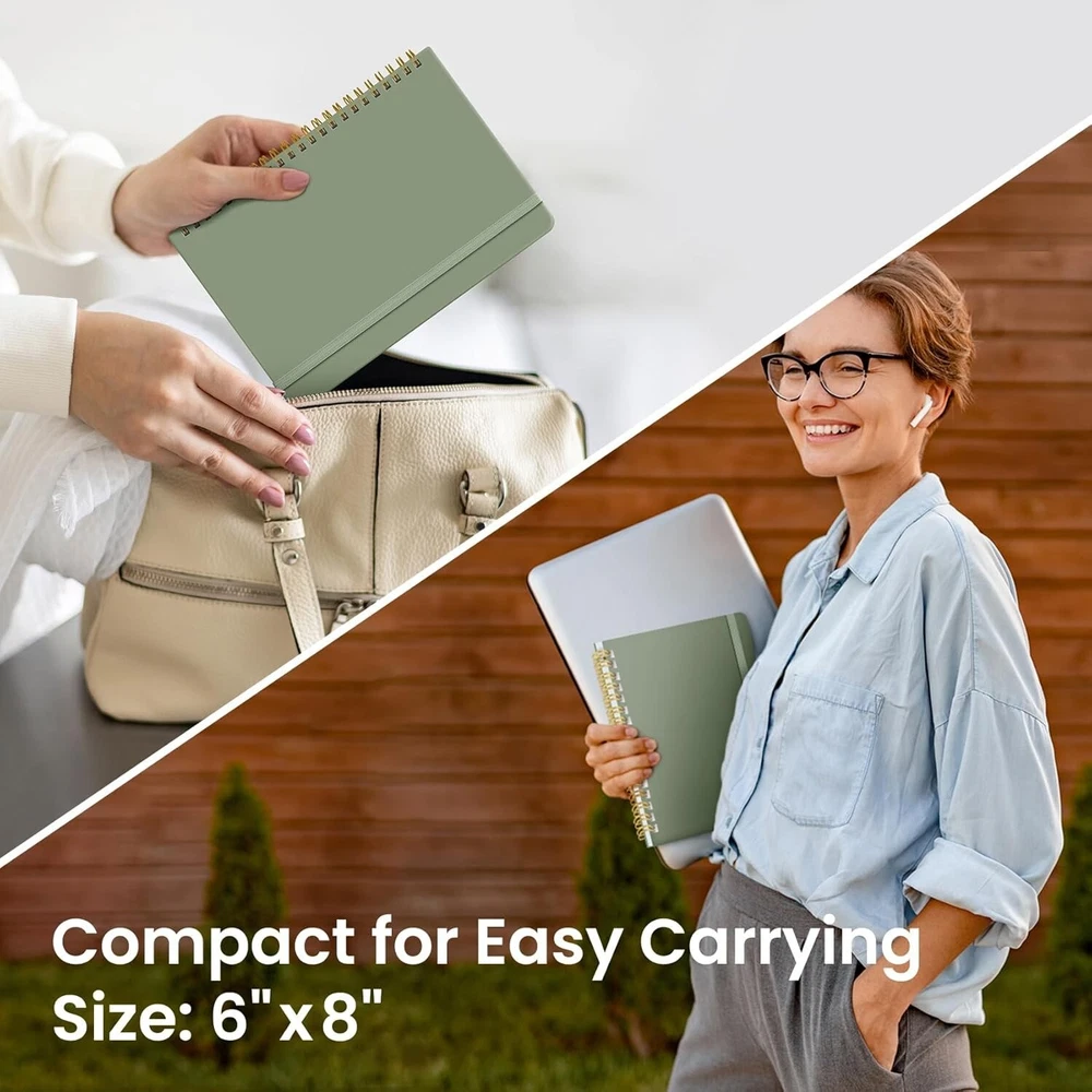 Sturdy Construction: Our Lined Spiral Journal Notebook is built to last with a sturdy metal twin-wire binding and a tough hardcover. The water-resistant cover shields your notes from damage, while the double-wire design allows for easy folding and flat laying. High-Quality Paper: Crafted from 100 GSM thick, ink-friendly paper, our notebook prevents ink bleed-through and ghosting. It accommodates various pens, including ballpoint, gel, and fountain pens. Each page features a day header for effortless date tracking. Organized and Functional Design: With 140 lined pages and a 6-page blank table of contents, our notebook offers ample space for note-taking and easy referencing. An inner pocket keeps miscellaneous items secure, and an elastic closure band ensures the notebook stays closed when not in use. Versatile Usage: Suitable for office, school, and home environments, our notebook is perfect for journaling, note-taking, drawing, goal setting, Bible, and planning. It's a thoughtful present for friends, family, classmates, and colleagues. Medium-Sized Portability: Measuring 6 inches x 8 inches, our medium notebook strikes the perfect balance between portability and functionality. Its sturdy construction and aesthetic design make it an ideal companion for all your writing endeavors.