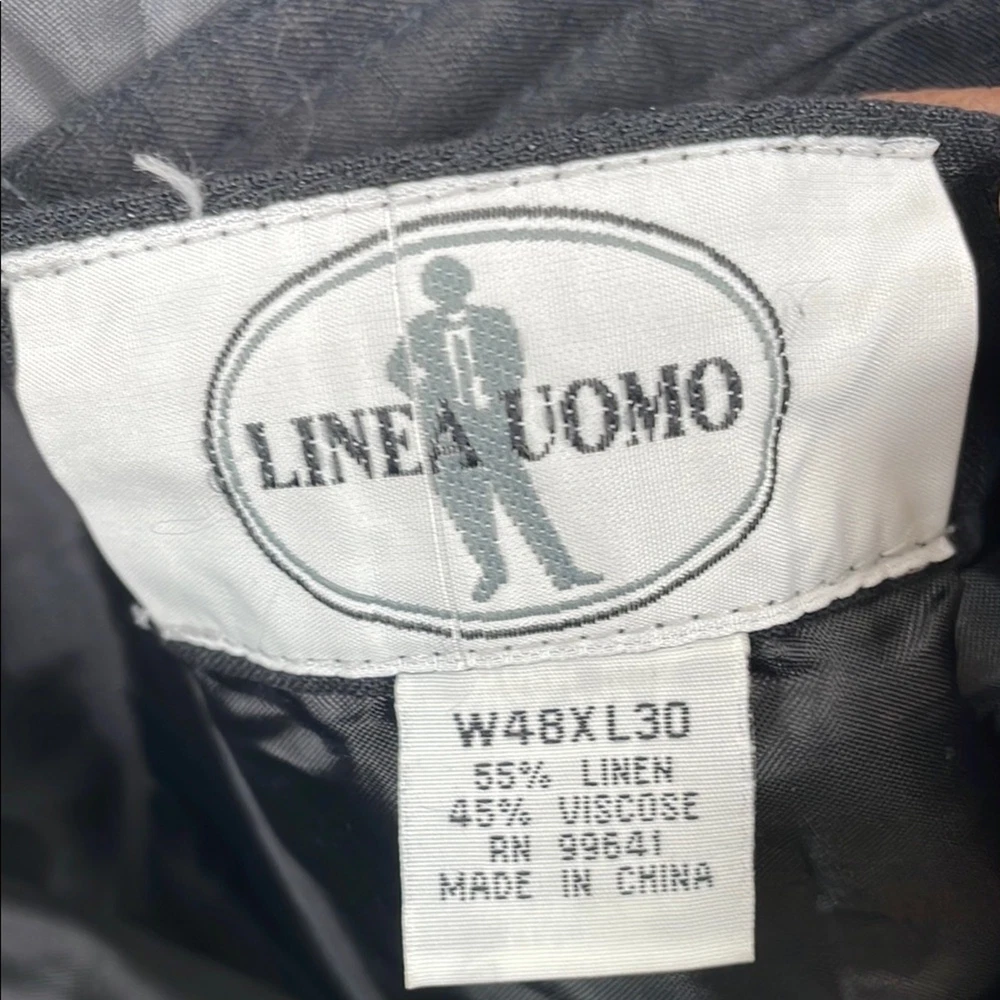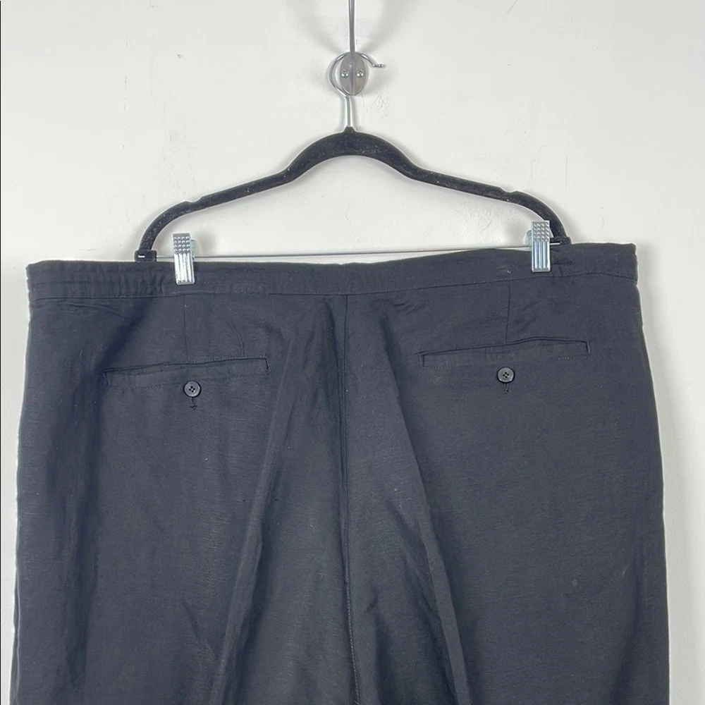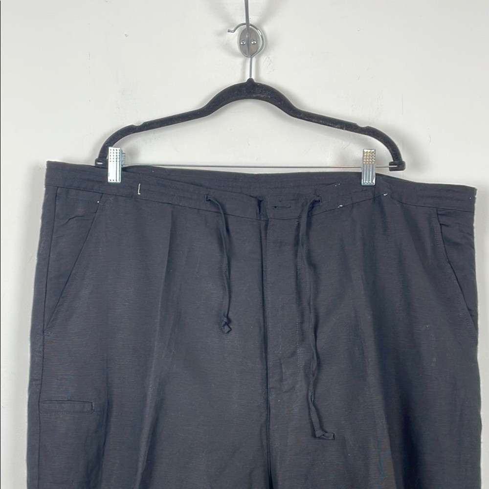 Linea Uomo Linen Blend Khaki Vacation Wide Leg Men's 48 Black Drawstring Pants. FEATURES: Flaws: None visible, pre-loved Good Condition, See Measurements Below Style Profile: Comfortable and stylish black drawstring pants for men. Perfect for casual outings or lounging at home. Approximate measurement Waist: 48" Inseam: 30" AB-14-0020405262025
