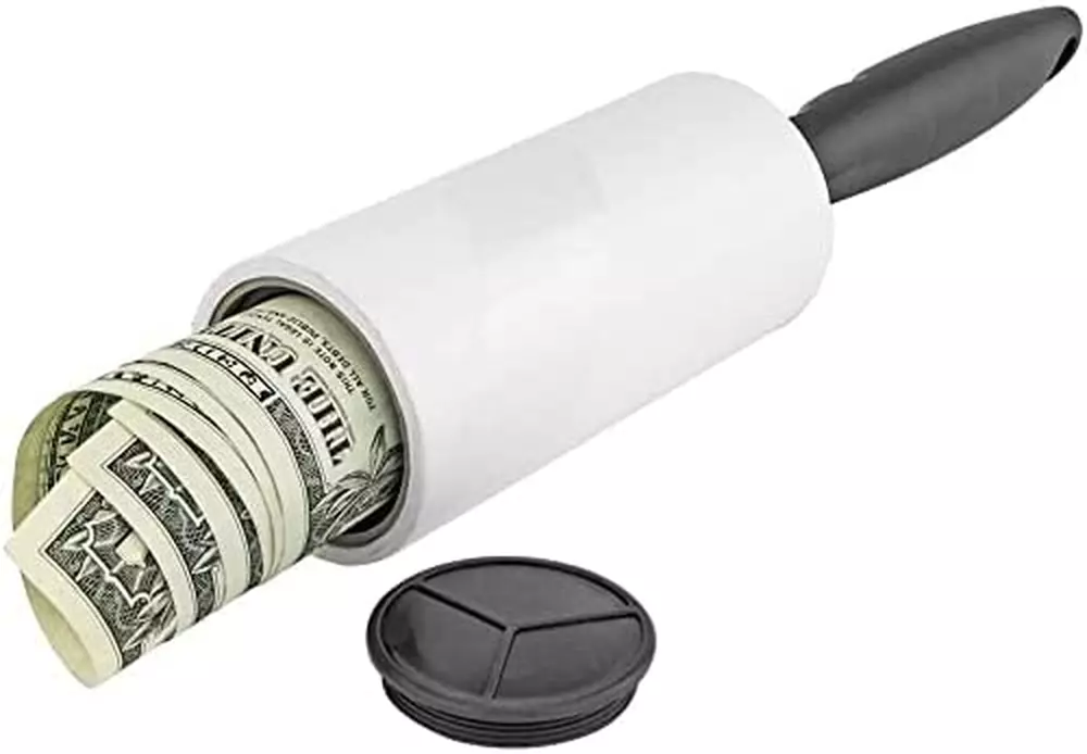 PP ✔️The product is made from a real lint roller that actually works. ✔️This lint roller is also a diversion safe. Nobody would suspect the valuables hidden in the center compartment of the lint roller. You could store the lint roller in anywhere. ✔️The top plastic of the lint roller is not easy to unscrew by the others. ✔️Light and Portable for Vacation or Home Use ✔️High Quality Material and Smart Hidden Room To Store Key, Cash anything! The product is made from a real lint roller that actually works. This lint roller is also a diversion safe. Nobody would suspect the valuables hidden in the center compartment of the lint roller. You could store the lint roller in anywhere. The top plastic of the lint roller is not easy to unscrew by the others.