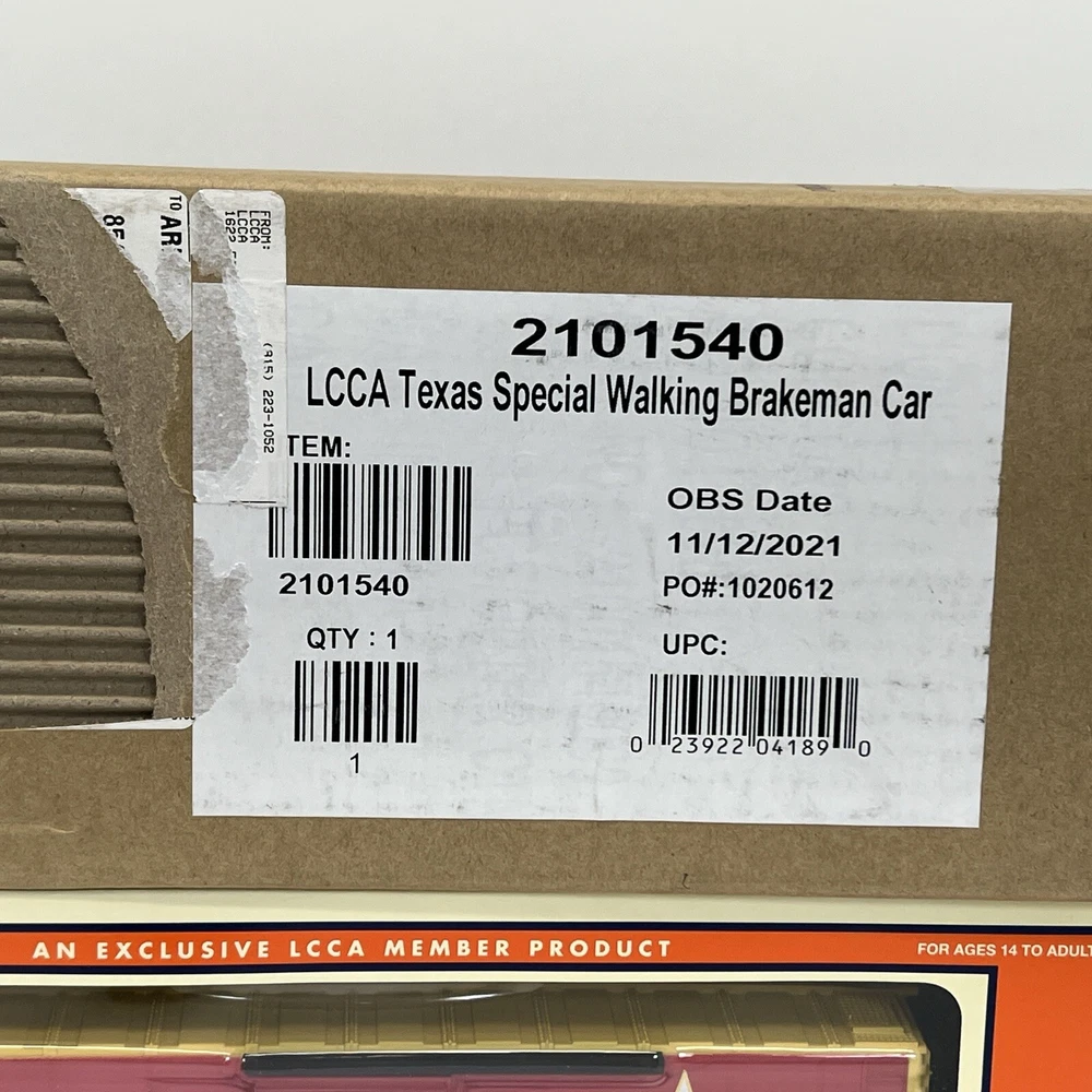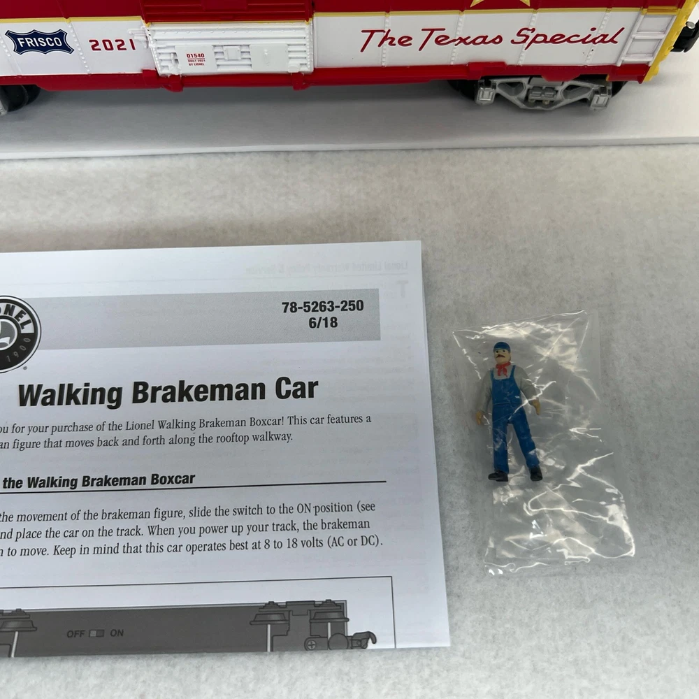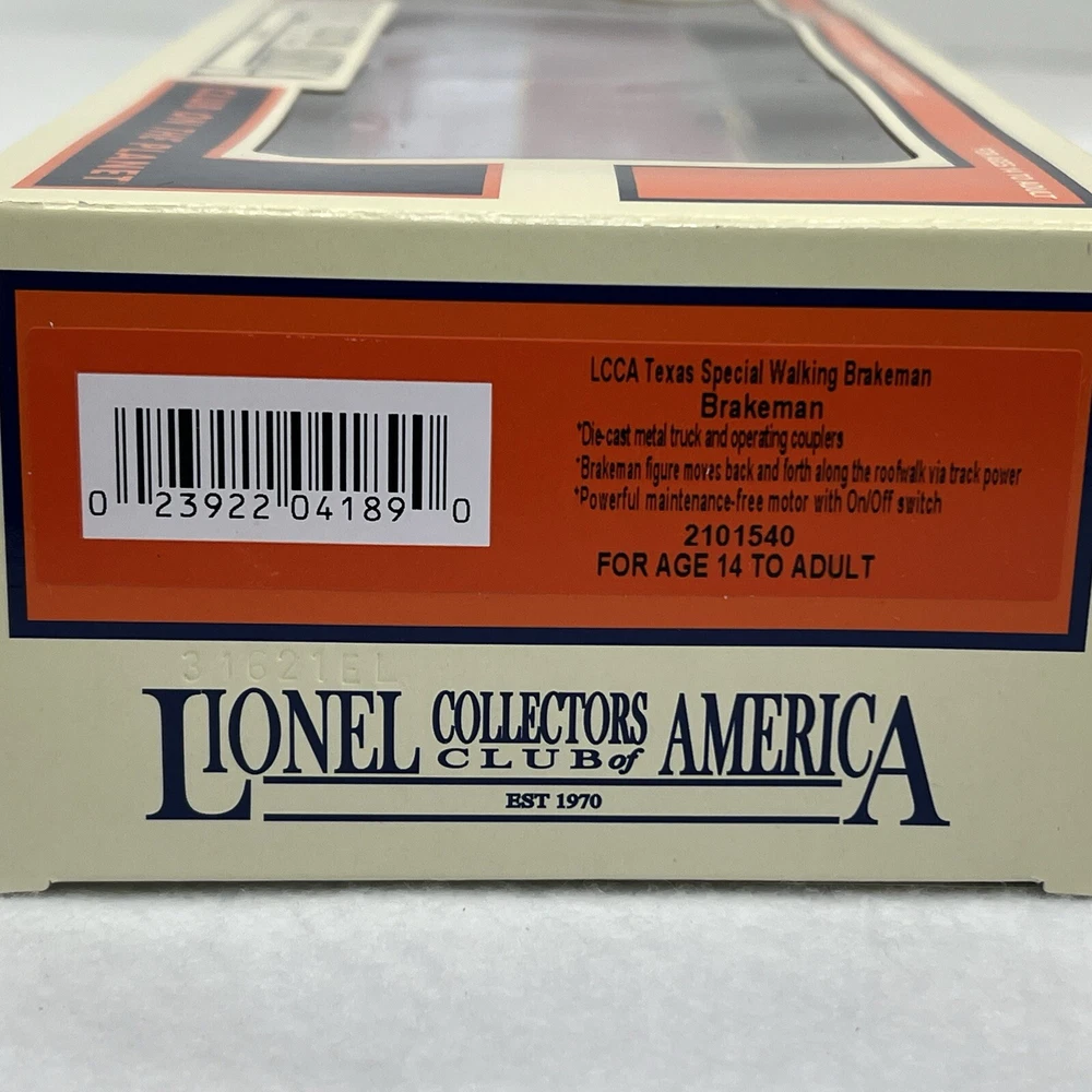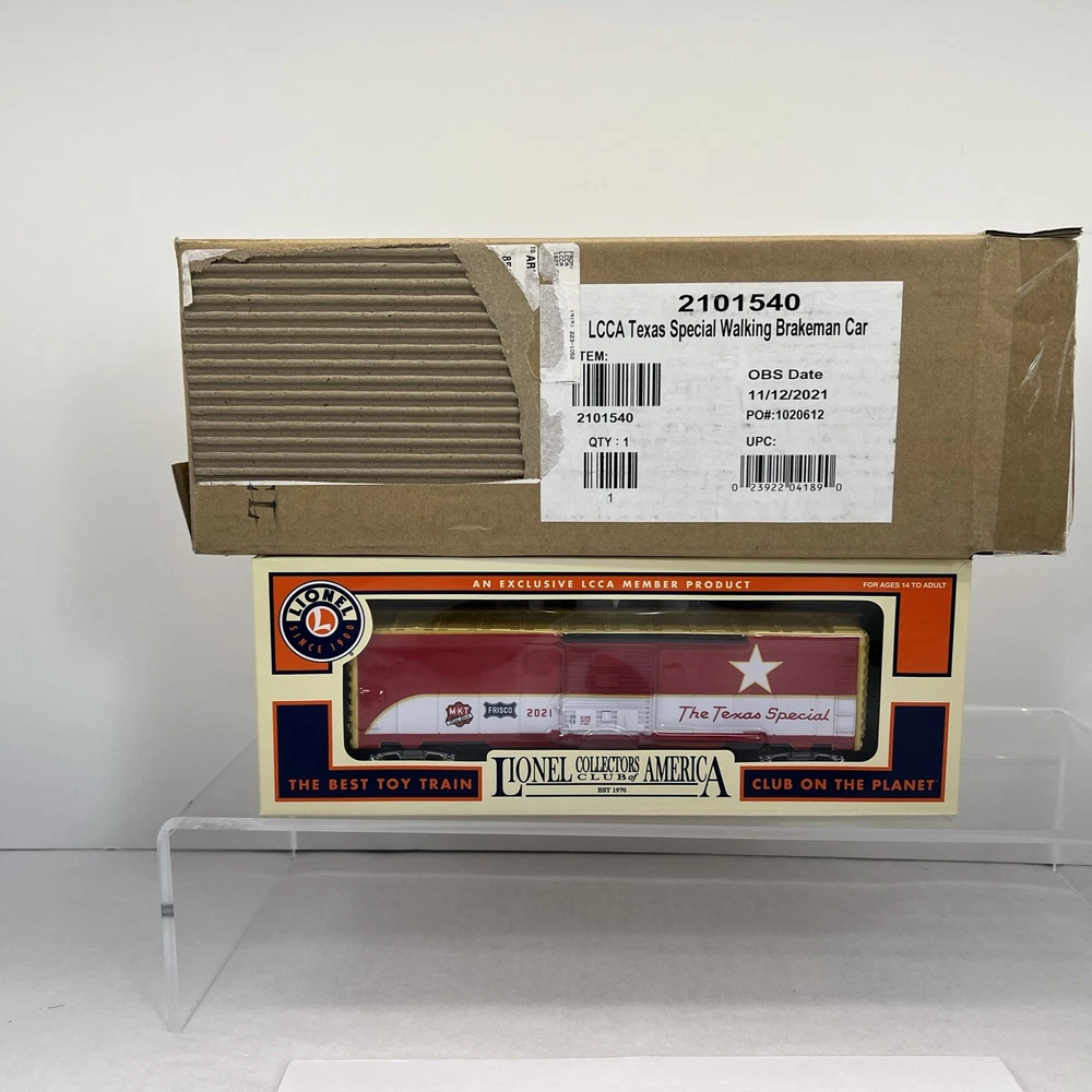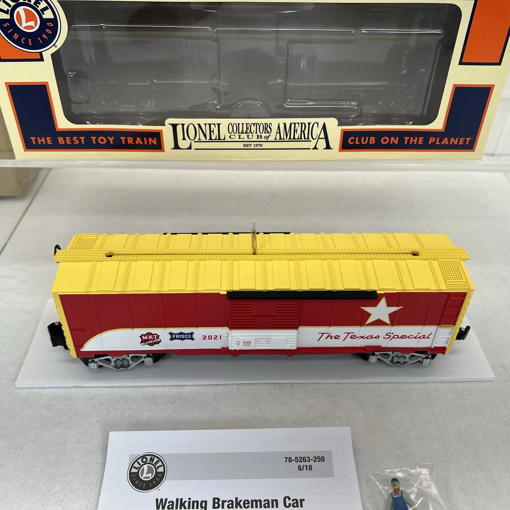 LIONEL (LCCA) LIONEL COLLECTORS CLUB OF AMERICA LCCA 2021 TEXAS SPECIAL WALKING BRAKEMAN BOX CAR THREE RAIL O GAUGE 2101540 NEW!! CLUB CAR. ORIGINAL BOX. SHIPPING BOX INCLUDED WILL BE PACKED TO ENSURE SAFE DELIVERY! Winning US bidder receives FREE SHIPPING USPS Priority UPS!! Canada Priority shipping is available . All other countries please email for a mailing quote. Thanks for looking! I ship everyday!!!!