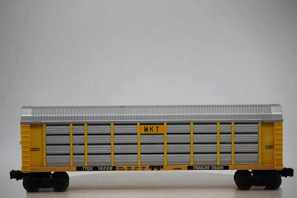 Lionel 6-16228 O Gauge MKT TTGX Auto Carrier Car with Screens LN SKU#009369 PLEASE READ BEFORE PURCHASING Condition: Please review all photos carefully for details on the item's condition. Photos are part of the description, and any notable flaws will be highlighted. Combined Shipping: If purchasing multiple items, request a revised invoice before paying to ensure accurate combined shipping costs. eBay's system may not calculate this correctly, leading to overcharges. Lighting Disclaimer: Photos are taken under bright lighting to highlight details, which may cause slight variations in color or hue depending on your lighting. If you need additional photos (e.g., in natural light) or more details, please ask before purchasing. As-Is Items: Items come AS-IS. The way they appear in our pictures is how the Item will arrive to you. What's Included: Only the items shown in the photos and described in the listing are included in the purchase. We strive to describe items thoroughly and provide clear photos. If you have any questions or concerns not addressed in the listing, feel free to ask before purchasing. Thank you for shopping with us!