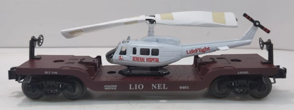 Here is a Lionel 6-16968 O Gauge Aviation Flatcar with Ertl Helicopter #6461. This flatcar features a removeable helicopter, die-cast metal sprung trucks, die-cast meta... This item has been graded per TCA standards C-8: Like New. This item appears to have been run sparingly, and displays overall signs of very light previous use. The original paint is in great shape, and the rest of the unit displays a like-new overall finish. The original box is included. Please check the photos for a detailed look at this item. Overall condition is Like New. Availability: Ships within 1 Business Day! Trainz Product Id: 11394264 Add Seller to Favorites eBay Store About us Policies Add Seller to Favorites eBay Store About Trainz Policies Lionel 6-16968 O Gauge Aviation Flatcar with Ertl Helicopter #6461 LN/Box Description Payment Shipping Returns Description Here is a Lionel 6-16968 O Gauge Aviation Flatcar with Ertl Helicopter #6461. This flatcar features a removeable helicopter, die-cast metal sprung trucks, die-cast metal operating knuckle couplers, metal wheels and axles. This item has been graded per TCA standards C-8: Like New. This item appears to have been run sparingly, and displays overall signs of very light previous use. The original paint is in great shape, and the rest of the unit displays a like-new overall finish. The original box is included. Please check the photos for a detailed look at this item. Overall condition is Like New. Condition: Like New ( C-8 Complete, all original, no rust, may show some sign of being run and/or age. Standards for all toy train related accessory items apply to the visual appearance of the item and do not consider the operating functionality of the equipment. Condition and Grading Standards are subjective, at best, and are intended to act as a guide. ) Operational Status: Not Applicable This item does not require testing. Original Box: Yes ( P-7 Handling indentions, minute edge wear, small creases. ) Manufacturer: Lionel Model Number: 6-16968 Years Manufactured: 1996 - 1996 Road Name: Lionel Scale/Era: O Modern Model Type: Freight Cars Availability: Ships within 1 Business Day! The Trainz SKU for this item is 5694686. Trainz Product Id: 11394264 Save up to 75% on shipping when you use the eBay "Add to Cart" button to combine eligible Trainz items in your cart and choose the same carrier service for each item (e.g. "Economy Shipping"). Please note that using the "Buy It Now" button will create a separate order that CANNOT BE COMBINED with other items. Payment Pay via the eBay Checkout using PayPal, Visa, MasterCard, Discover, or American Express. Payment details for specific items can be reviewed by clicking the "Shipping and Payments" tab at the top of every listing. Taxes may be applied at checkout based on your shipping address and Marketplace responsibility or Seller responsibility. Click "Learn more" under Taxes on the "Shipping and Payments" tab. Trainz allows multiple items to be combined into a single order for up to seven days to receive discounted shipping. Shipping discounts are automatically calculated at checkout. Please note, after seven days our systems may automatically re-list unpaid items. Learn more by reviewing our policies Shipping Trainz Shipping Rates For This Item Save up to 75% on shipping when you use the eBay "Add to Cart" button to combine eligible Trainz items in your cart and choose the same carrier service for each item (e.g. "Economy Shipping"). Please note that using the "Buy It Now" button will create a separate order that CANNOT BE COMBINED with other items. To see your actual shipping rate make sure you are logged into your eBay account and click the "Shipping and Payments" tab at the top of this listing. We’re committed to keeping our shipping prices low, and our delivery times fast. Our system will automatically choose the best carrier at the time of shipment to help us deliver the lowest prices possible. We ship internationally via the eBay International Shipping (EIS) Program. Returns We love happy customers and do our best to provide a fair and hassle-free customer satisfaction policy. Trainz will gladly repair or replace your item, issue a refund, or negotiate a partial credit. Just contact us within 30 days of receipt of the item. Explain why the item does not meet your expectations and how you would like us to handle the issue. If your item has been damaged try to include a photograph of the actual damages. We'll do our absolute best to make you happy. Domestic Customers: If you and Trainz decide that the best recourse is to return the item for refund or repair we will send you a pre-paid return call tag at no cost (except for returns due to customer remorse). Make sure to include your contact and order information when you return your items. Once Trainz receives and inspects the items we will repair your item or issue a refund. International Customers: Before selecting 'Return this item' through eBay, please consider contacting Trainz first by selecting 'Contact Seller' under 'More actions' and give us an opportunity to resolve your issue. Once you select 'Return this item', the action is final and you will be dealing directly with eBay from that point on. You will be required to ship the item to an eBay-designated return center. The item will be destroyed and cannot be returned to Trainz or to you. Contacting Trainz provides us a chance to resolve your issue while allowing you to keep the item. Shop Categories Books and Media Scenery O Modern O Postwar O Prewar O MPC S Modern S Postwar HO Modern HO Vintage Std Gauge Modern Std Gauge Vintage Z Scale N Scale OO Scale O Scale 2 Rail G Scale Wooden Trains Train Art Tools Other Newsletter Subscribe to our eBay newsletter to receive our latest news and promotions. Subscribe